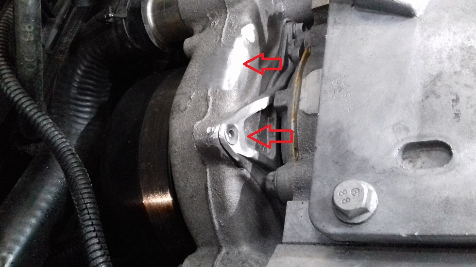 Vorerst hab ich nun den hintern Bügel der Wasserpumpe von ca. 6mm auf 3mm abgeschliffen und eine Senkschraube verwendet.