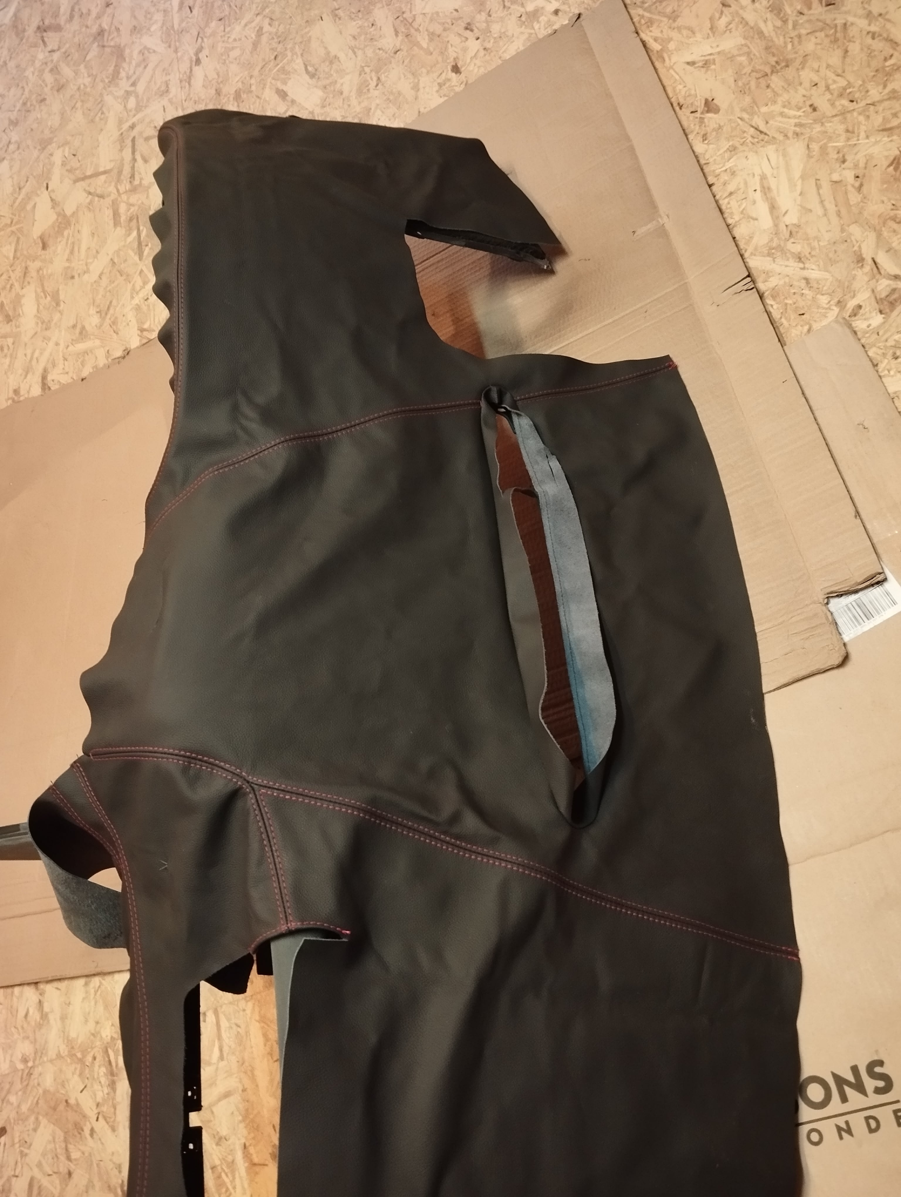Unter dem normalen Bezug ist eine ca. 10mm dicke Schaumstoffunterlage, auf die ich das Leder nicht kleben kann, bzw. die dann mit runter muss...