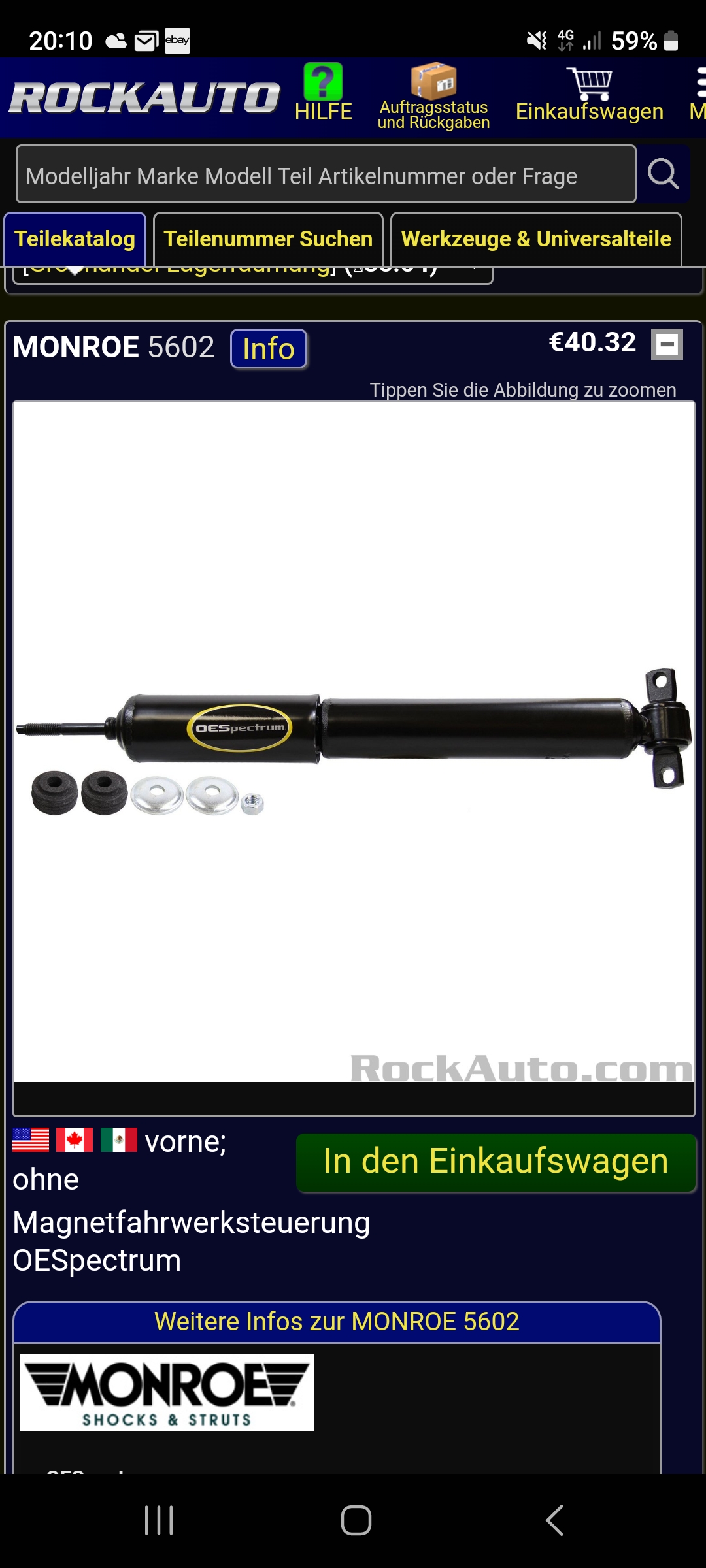 Bei Rockauto gibts nur ganze Stoßdämpfer. Und wenn nicht anders geht ist in der Abbildung der Richtige? Eine Frage: