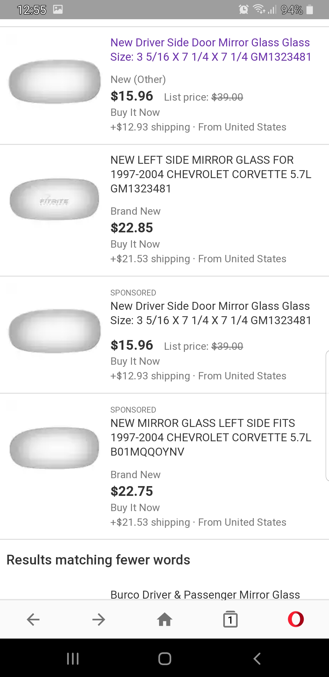 Ob es einen bestimmten Grund gibt, warum Du das bei ebay.com kaufen musst, weiß ich nicht. Gibt es jedenfalls bei Rockauto incl. Versand und Lieferung bis zum 3. Juni für rund 22 Euro. Von den abgebildeten Gläsern kannst Du das incl. Versand billigste bestellen (Zuverlässigkeit des Verkäufers vorausgesetzt), wenn ausdrück erwähnt ist, dass es GM GM1323481 ersetzt. Denn das ist ein flaches Spiegelglas, das auf die Reste Deines alten Glases passt. Bei den von Dir aufgelisteten Angeboten kommt wahrscheinlich noch die Einfuhrumsatzsteuer hinzu, weil der Gesamtpreis incl. Versand deutlich über 30 € liegt, Rockauto liegt incl. Versand unter der Freigrenze.