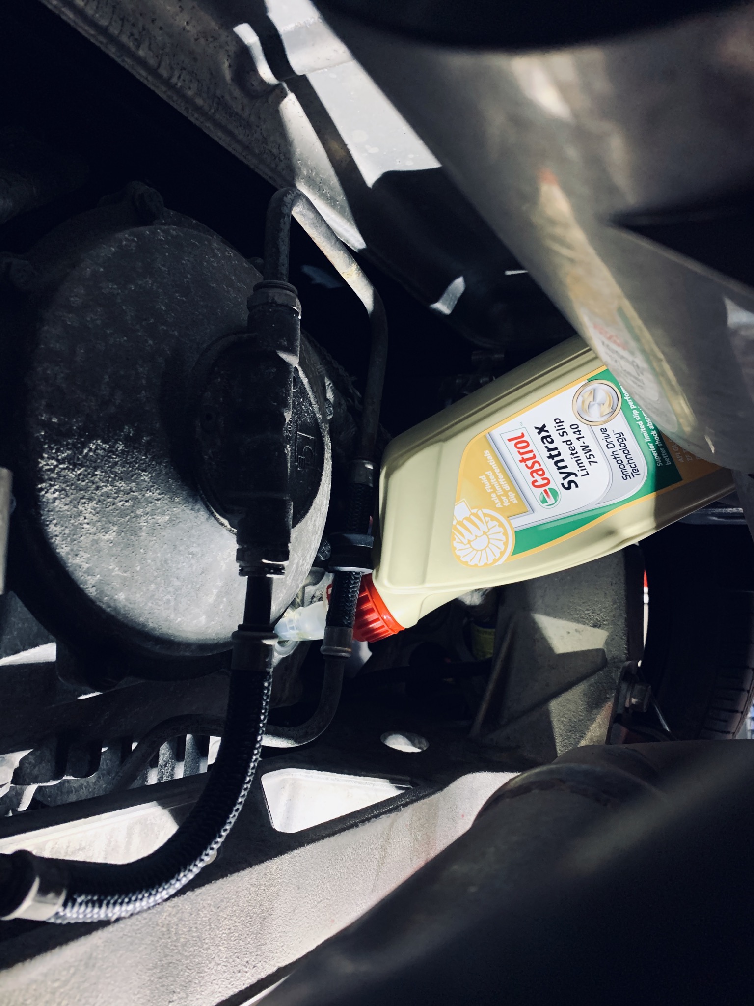 Saubere Wanne unter das Diff und wenn es da reinplatscht ist das Einfüllen fertig.