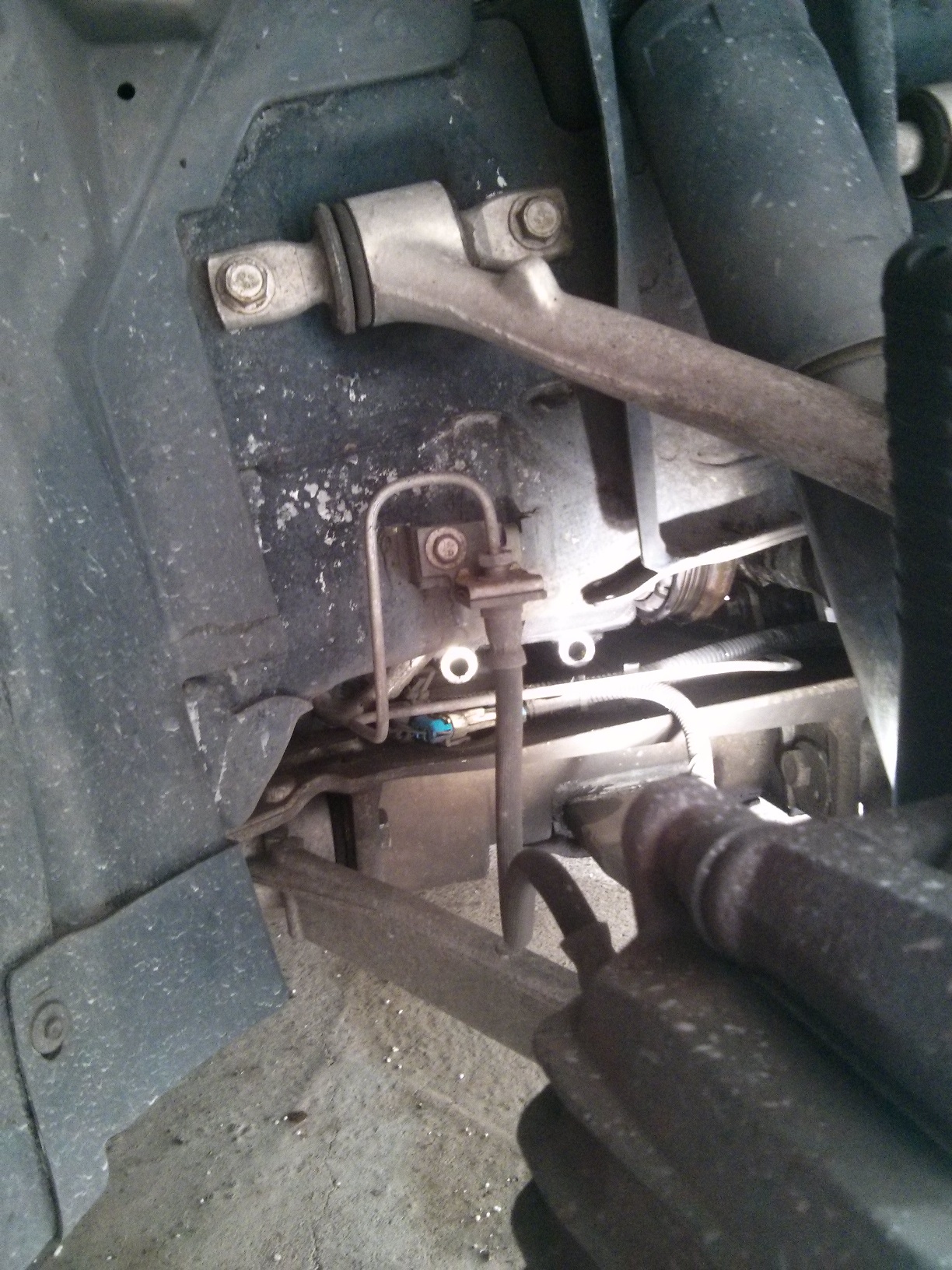 Hier die verf*ckte Befestigung. Kommt man nur mit nem Gelenk dran. Dann erstmal Pause, weil ich noch passende Maulschlüssel für die schei** Riesenmutter brauche.