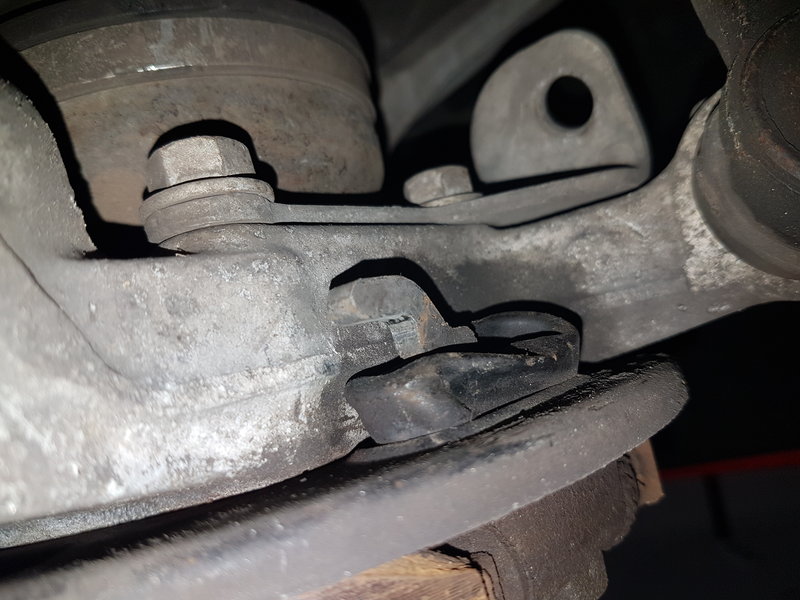 Jetzt den ABS-Stecker raus und das Handbremsseil lösen. Das Seil muss unten vom Haken gezogen werden und ist dann noch geklemmt. Sieht man auf dem dritten Bild ganz gut. Der Halter auf Bild 2 kann direkt mit runter, 15mm.