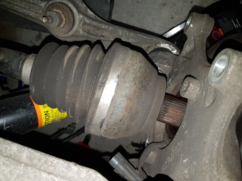 Die Amis im CF.com meinen, man sollte den unteren Ball Joint lösen und ausdrücken und dann die Achse raustreiben, während man das Radlager zu sich zieht.