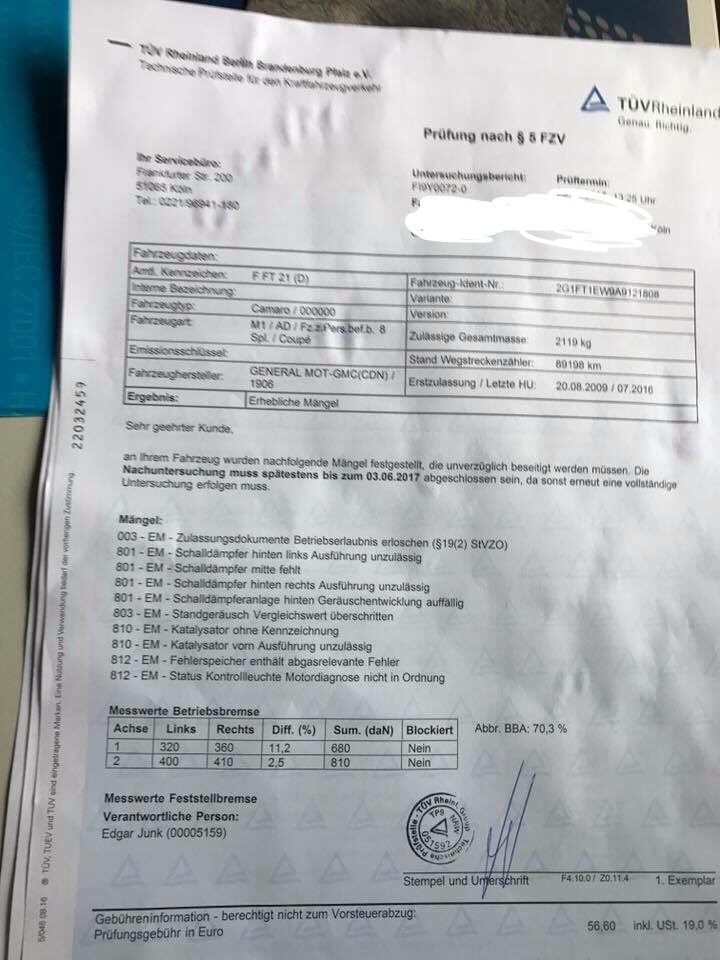 Das sind nur die Tüv kosten es kommt noch eine Fette saftige anzeige wegen führen eines unsicheren PKW auf dem Straßenverkehr und Behinderung der Umwelt und Mitmenschen.