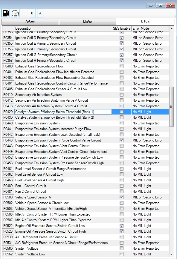 Ach ja, soweit ich die DTCs richtig verstehe, ist hier die Überwachung der Kat-Effizienz komplett abgeschaltet?