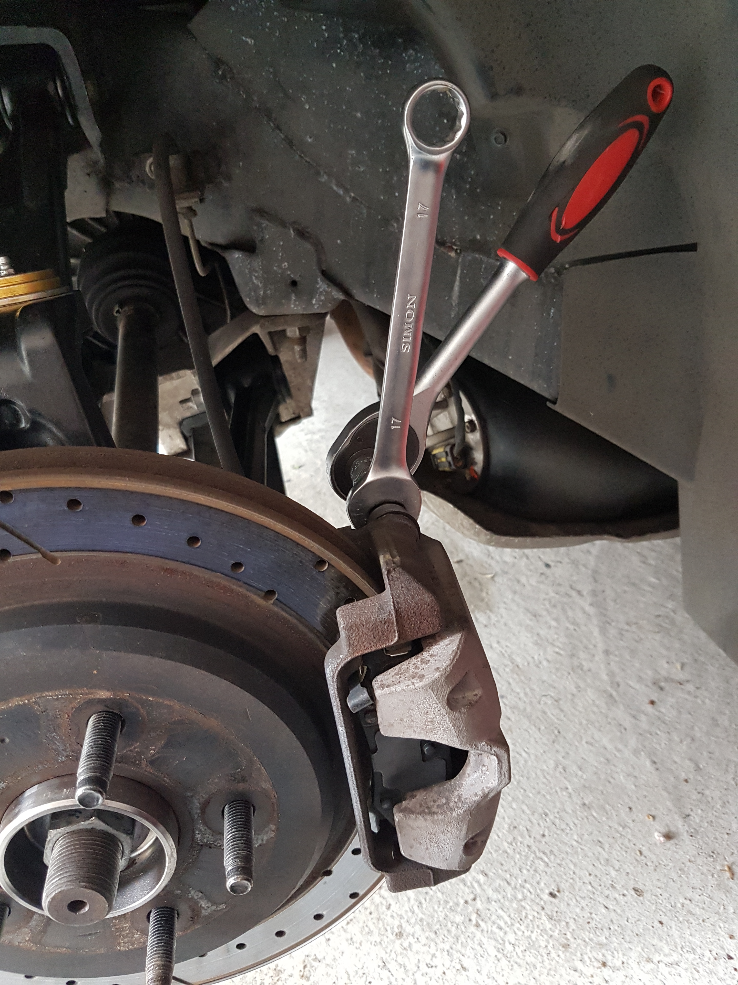 Knarre mit 15er, 19er Nuss (+21er falls die Scheiben gewechselt werden oder Z51-Umbau)