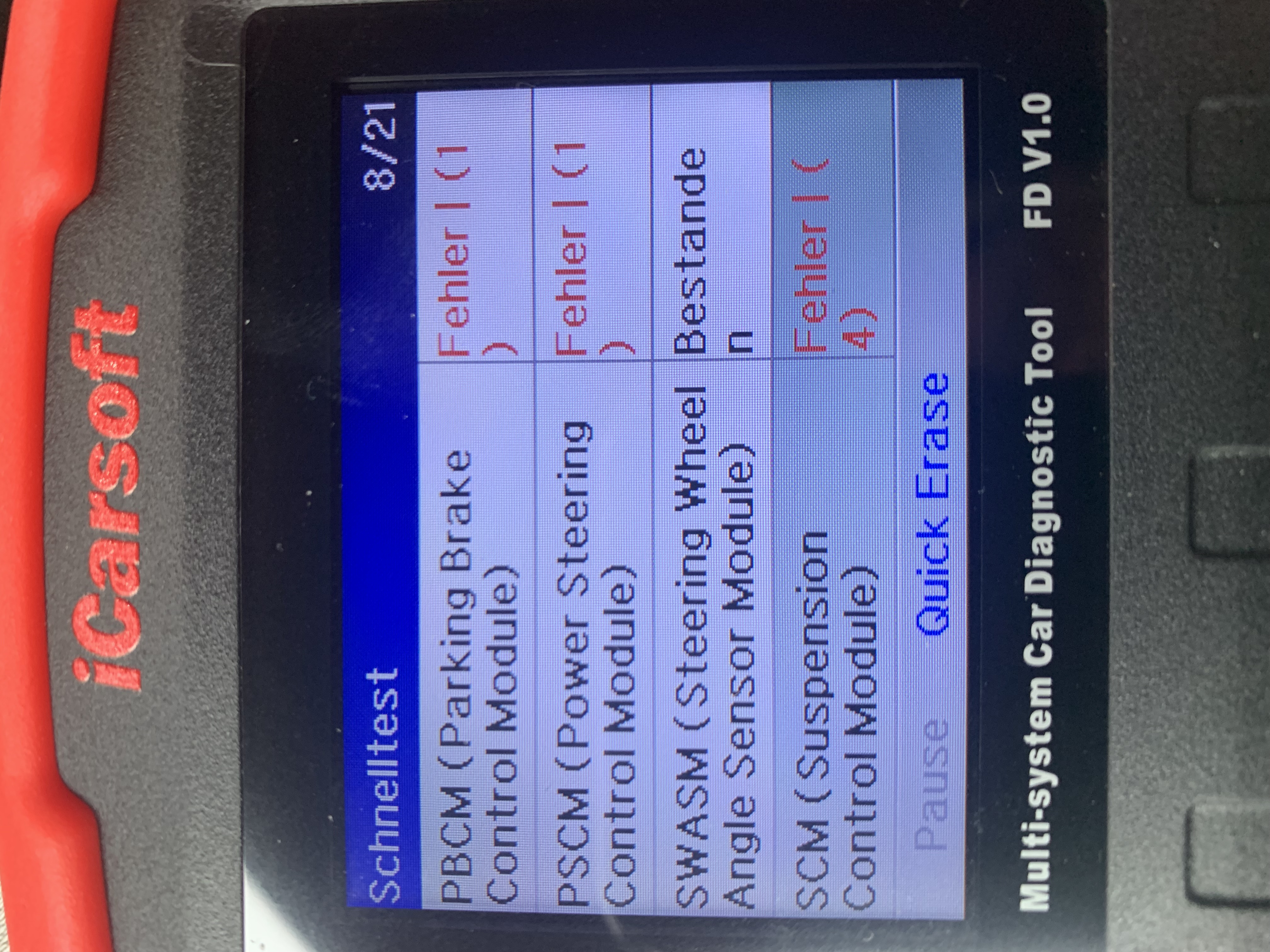 Jetzt kommt gelbe motorleuchte und parkbremsen Service Leuchte.