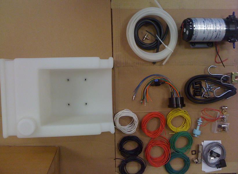 Um sicherzustellen, das der Motor uns die Leistungssteigerung nicht übel nimmt, und Themen wie Klopfen, Klingeln oder gar Detonation ausgeschlossen werden können gabs noch eine Wasser-/Methanoleinspritzung oben drauf. Abhängig vom Ladedruck wird eine frei wählbare Menge des Gemisches vor die Drosselklappe eingespritzt. Die Geschichte war nie (und wird es auch nie) dazu gedacht um mehr Leistung zu produzieren. Sie dient ausschliesslich zur Kühlung der Ladeluft, zur Erhöhung der Oktanzahl und zur Reinigung der Ventile und des Brennraums. Je nach Einsatzgebiet wird mit einer Mischung von maximal 50/50 gefahren, oder der Wasseranteil erhöht (bis zu 10/90) - letzteres ist quasi ein Oktanbooster.