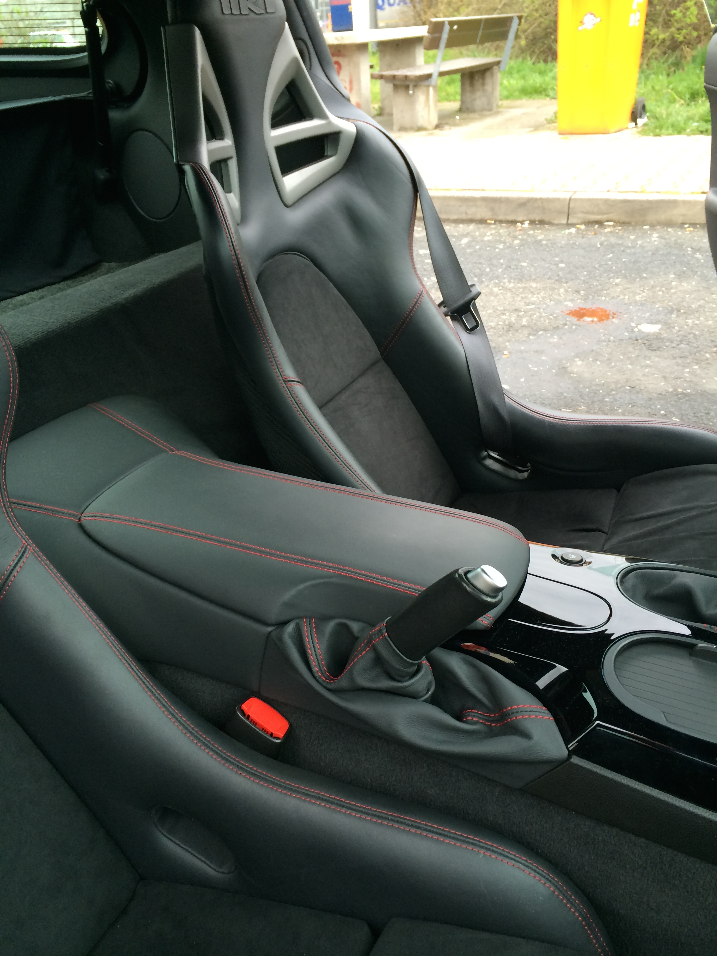 Durch die unergründlichen Wege des Herrn kam ich, geleitet durch unseren Papst, zu den Tikt Carbonschalensitzen. Die Innenteile wurden optisch durch den Sattler von Werner noch mit schwarzem Alcantara aufgehübscht und dann, professionell und perfekt wie von Werner gewohnt, verbaut. Nach den ersten Kilometern dachte ich erst: "René, ob das mal die richtige Entscheidung war". Aber schon nach der Rückfahrt von Werner nach Hause möchte ich sie nicht mehr hergeben. Man spürt alles was unter einem passiert. Selbst Belagswechsel auf der Autobahn und der Seitenhalt ist der absolute Hammer. Ich muß aber auch sagen das ich mit meinem Popöchen gerade reinpasse. Etwas breitere Hüften und schluß mit lustig.
