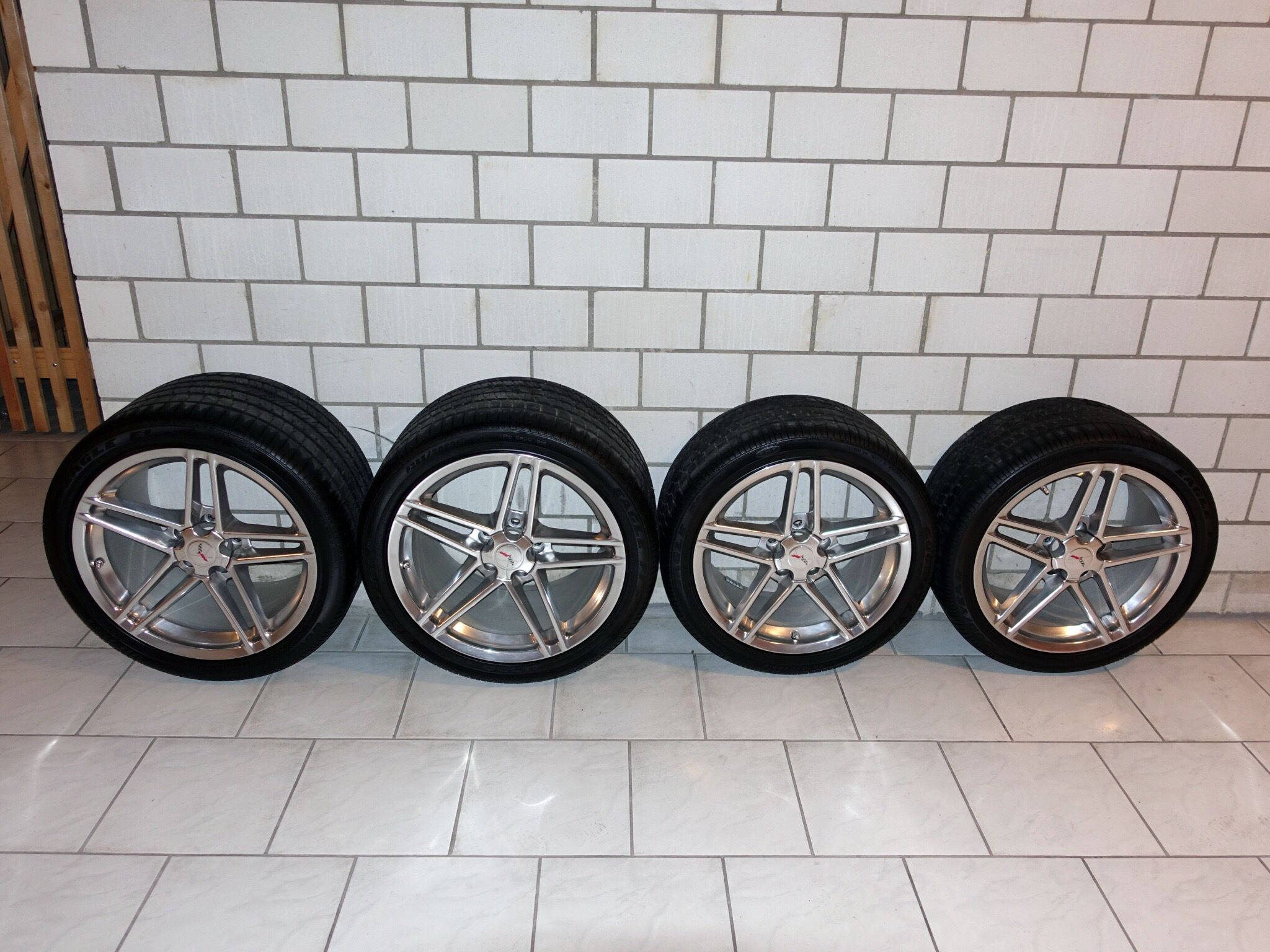 Neuwertige polierte Corvette Z06 Felgen mit guter Bereifung und Sensoren.