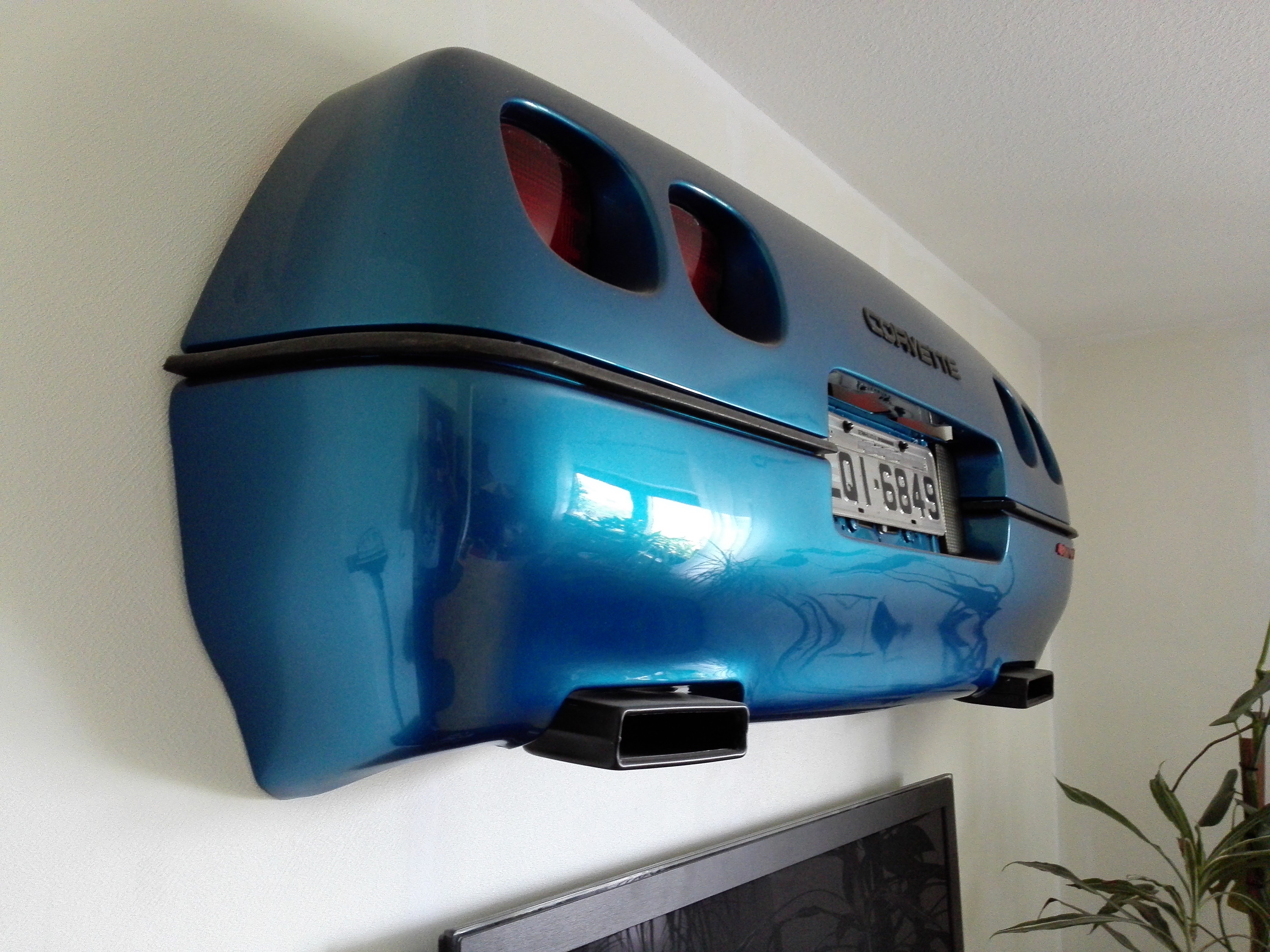 Allerdings habe ich noch mein selbst gebautes Corvette C4 ZR1 Heck das bei mir im Wohnzimmer hängt. Es handelt sich um eine Original ZR1 Heckstoßstange.