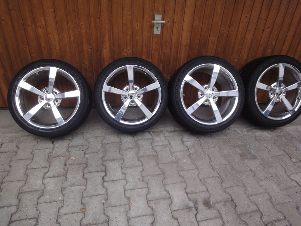 Zum Verkauf steht 1 Satz C6 Räder im 5 Arm Design die Gumby Wheels in Chrom in sehr gutem Zustand inkl. Reifendrucksensoren . Die Laufleistung der Felgen und Reifen beträgt nur 12800km nachweisbar . Die Reifen haben noch 4 - 5mm Profil und sind schön gleichmäßig abgefahren. Die Felgen sollten auch auf der C5 passen .Vorne 8,5 X 18 ET 56 und hinten 10 X19 ET 79 . inkl Fel Schrauben . Preis 890€ .