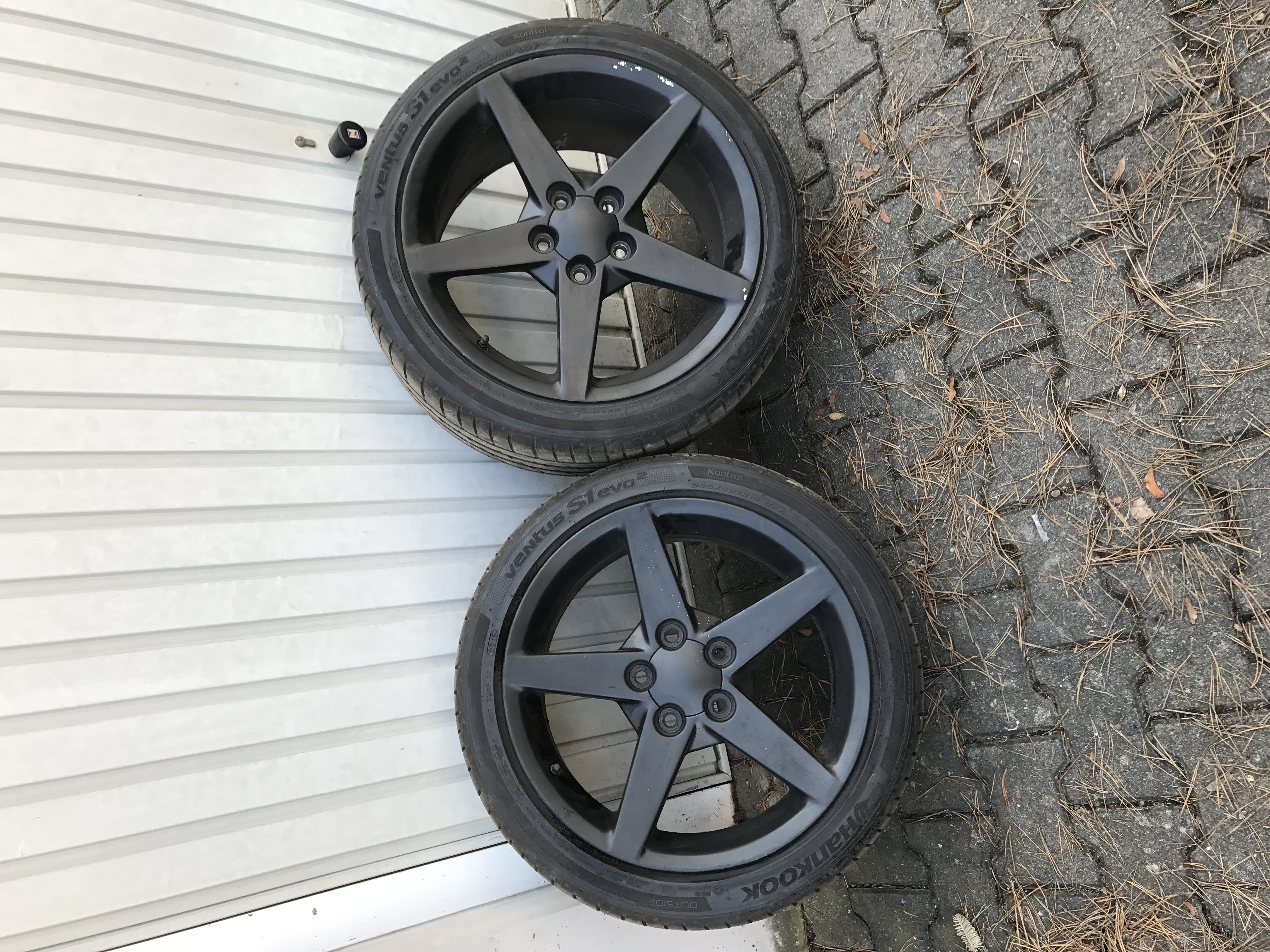 Originale Felgen im gebrauchten Zustand mit guten Reifen. Vorne von 2015 und sehr gutem Profil und hinten von 2013 und ca. 3,5 mm Restprofiel. Felgen wurden mal schwarz matt lackiert.