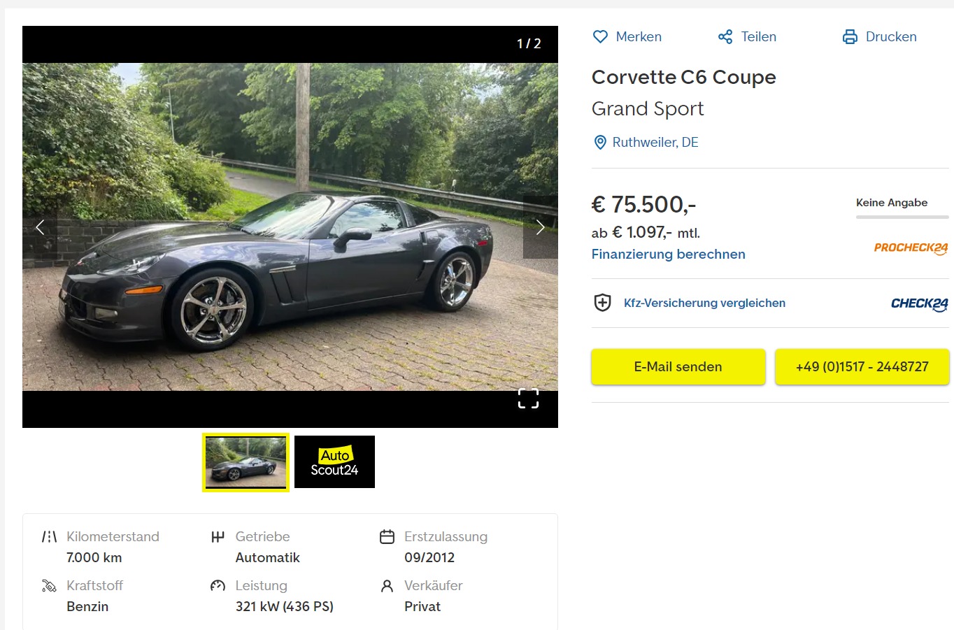 Die corvette kenne ich auch schon. Habe mal mit dem Typen geschrieben, Fahrzeug steht in Polen und die steht auch schon ewig drin. Wirkliche Nachweise zu allen Sachen hat er nicht. So um Juni / Juli stand sie schon mal drin, damals für 45.000 €. Der geht vom jeden Monat 1-2000€ runter weil die niemand will.