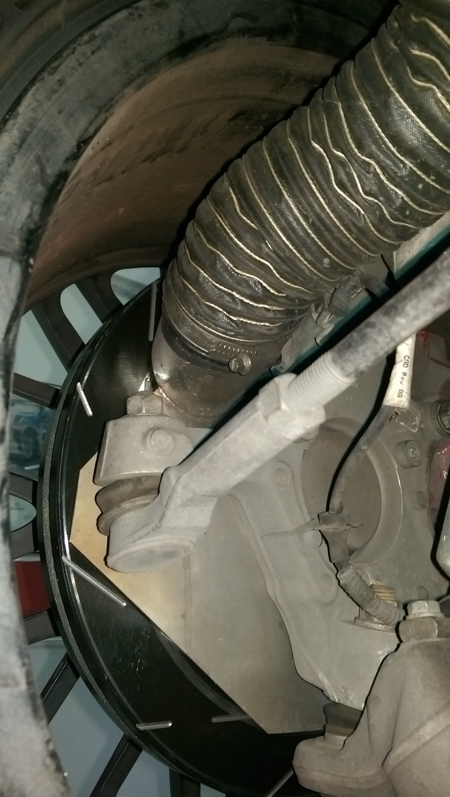 Das Erste was ich dann gemacht habe, waren die Bremenbleche mit dem Schlauch der Luft direkt an die Bremsscheibe zu bringen, um die Gummimanschetten der Gelenke vor Temperatur zu schützen.