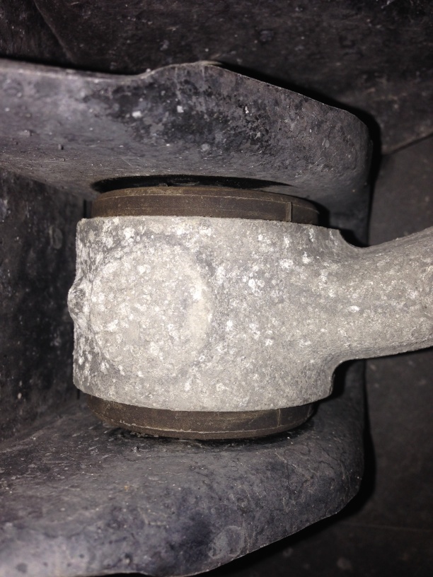Die serienmäßigen Gummis in der Dreieckslenkern sind sehr weich, aber bei dir sieht es so aus, als wären die Schrauben gar nicht richtig fest!