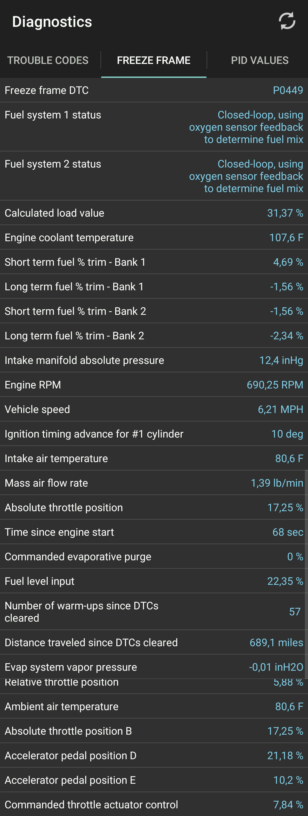 Da man zu diesem Fehlercode "P0449" viel bei google und in den Foren findet, bin ich wie beschrieben vorgegangen: