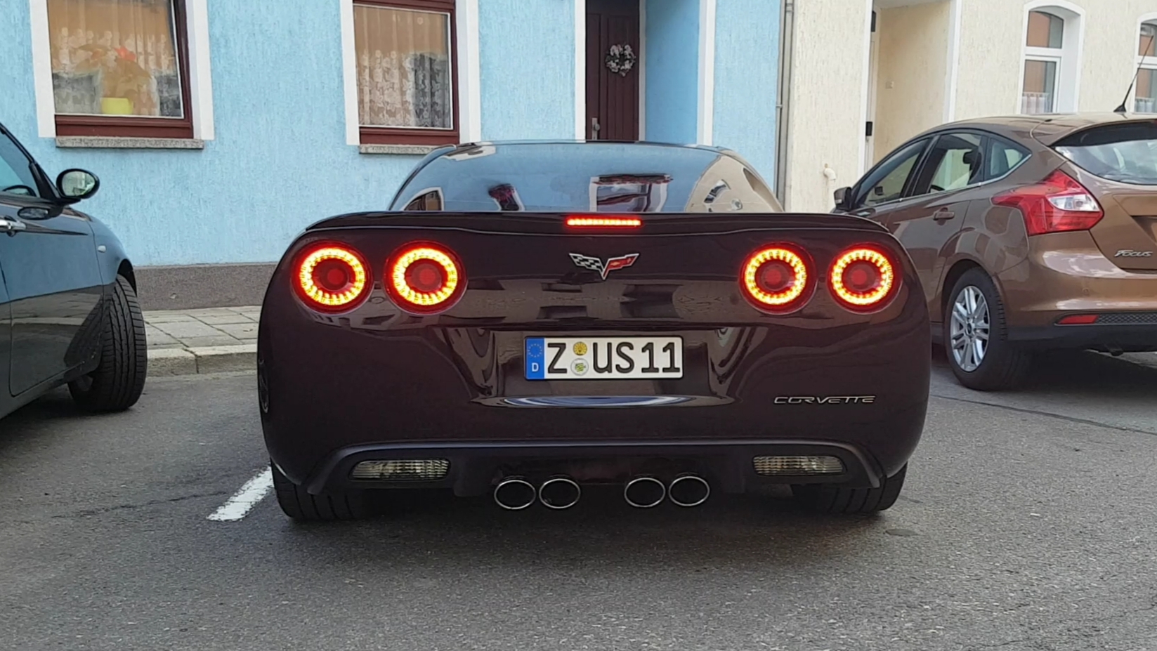 "Absolut" verboten sind rote Heckleuchten nicht, es gibt genug US Bürger die hierzulande mit roten Blinkern mit dem Segen der hiesigen Behörden umher fahren, auch bei fabrikneuen Fahrzeugen von z.B. BMW oder Audi. In Gegenden mit hoher US Militär Dichte dürfte man mit einer Corvette mit roten Heckleuchten kaum auffallen. Bei einer Kontrolle fällt es natürlich auf, wenn man keine US-Papiere vorweisen kann. Ich fahre schon Jahre so rum (im Kofferraum liegen bei mir allerdings die EU-Einsätze im Falle eines Falles...). Wie heißt es so schön: no risk, no fun.