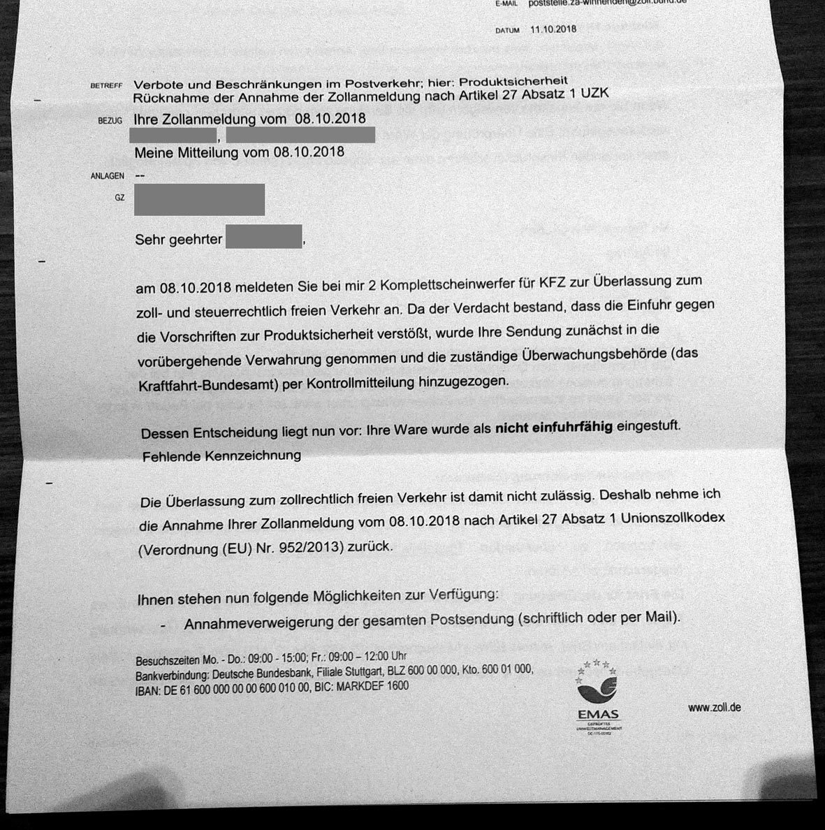 Re: Zoll verbietet die Einfuhr von original C7 Headlights!