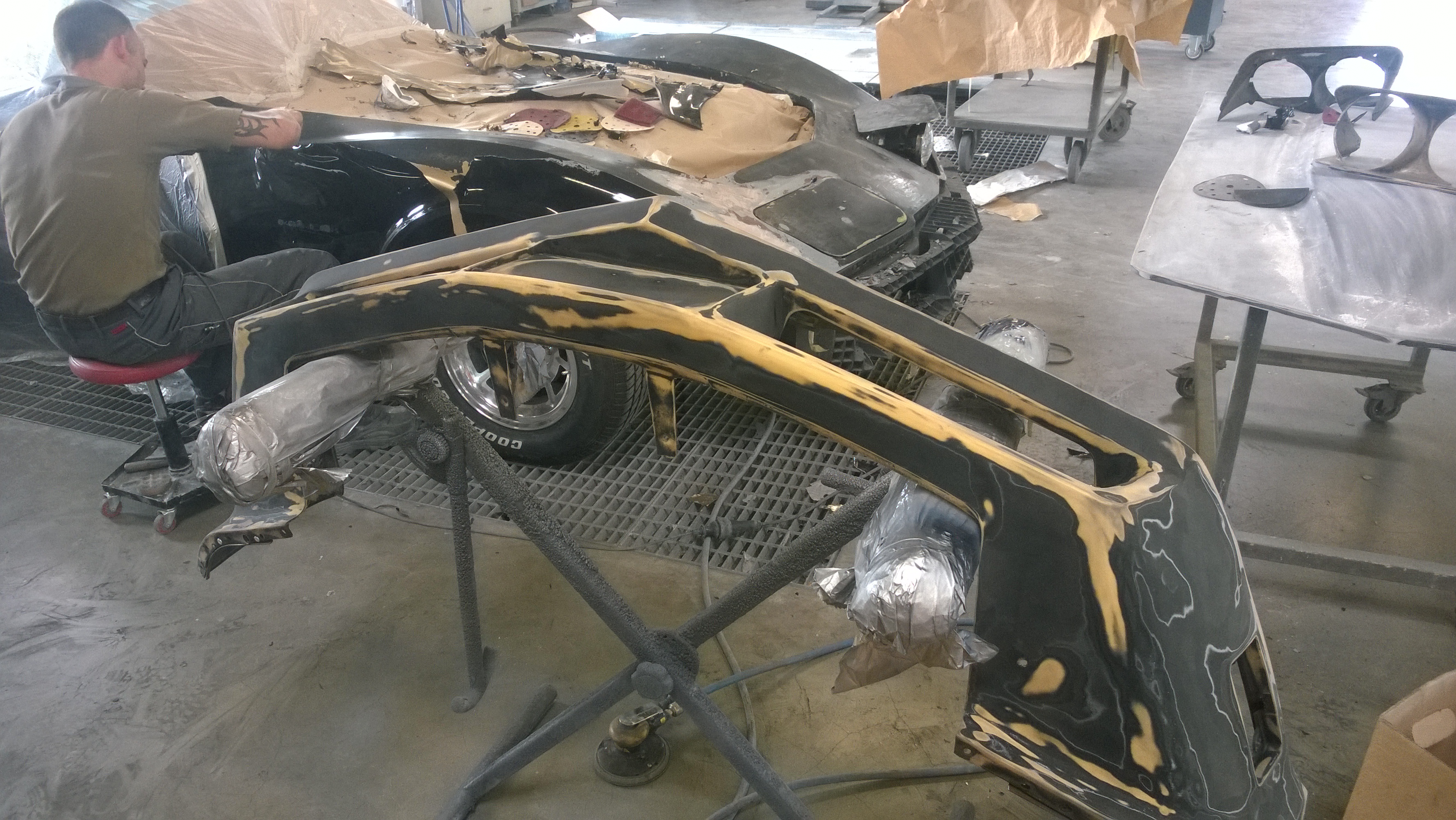 Man kann gut erkennen, dass zB der Frontspoiler runter geschliffen und das GFK "eingeritzt" wurde, um das zusätzliche neue GFK besser mit dem Untergrund zu verankern. Mit dem neuen GFK wurde dann die Spitze der Nase neu "modelliert" und final lackiert.