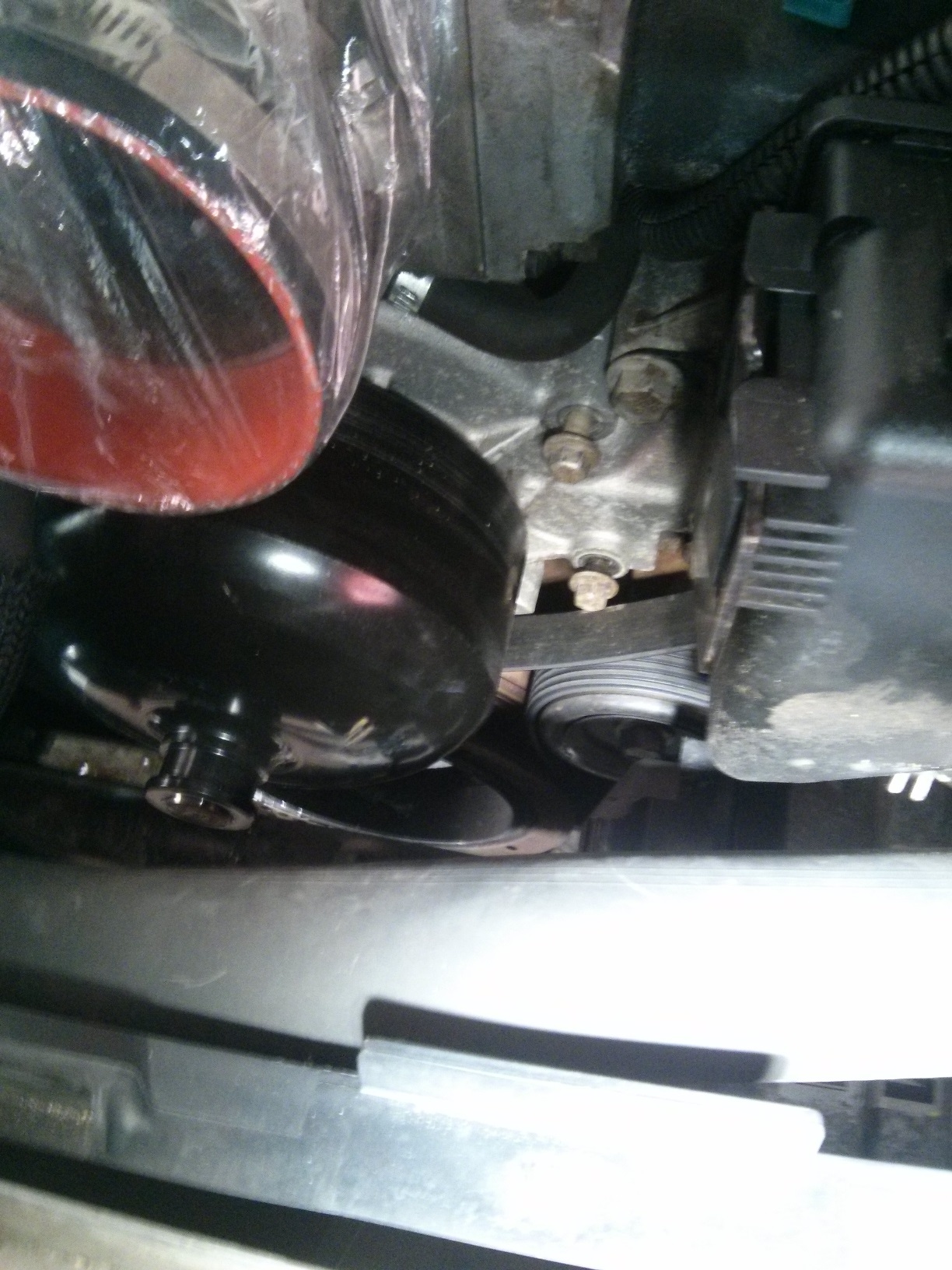 Ich hab den Kompressor nach hinten herausgenommen, um die Schweinerei mit der Wasserpumpe zu umgehen.