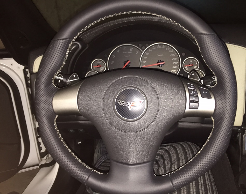 Ich habe ja mittlerweile ne C6 LS3 Cabrio als Automatik. Das Lenkrad hat mir noch nie wirklich gefallen. Werners Lenkräder sind der Knaller, aber in nem Automat nicht ohne Kompromisse (Paddle) zu verbauen. So ein schickes Teil war in meiner Ex C5 verbaut. Also was tun ? Bleibt nur das org. zu ändern. Im Nachbarforum wird ein Sattler für seine Arbeit und Preise gelobt. Lenkrad ausgebaut und ab damit zum Sattler. Dauer gerade mal 3 Wochen. Ergebnis einfach nur Klasse und der Preis ohne Worte
