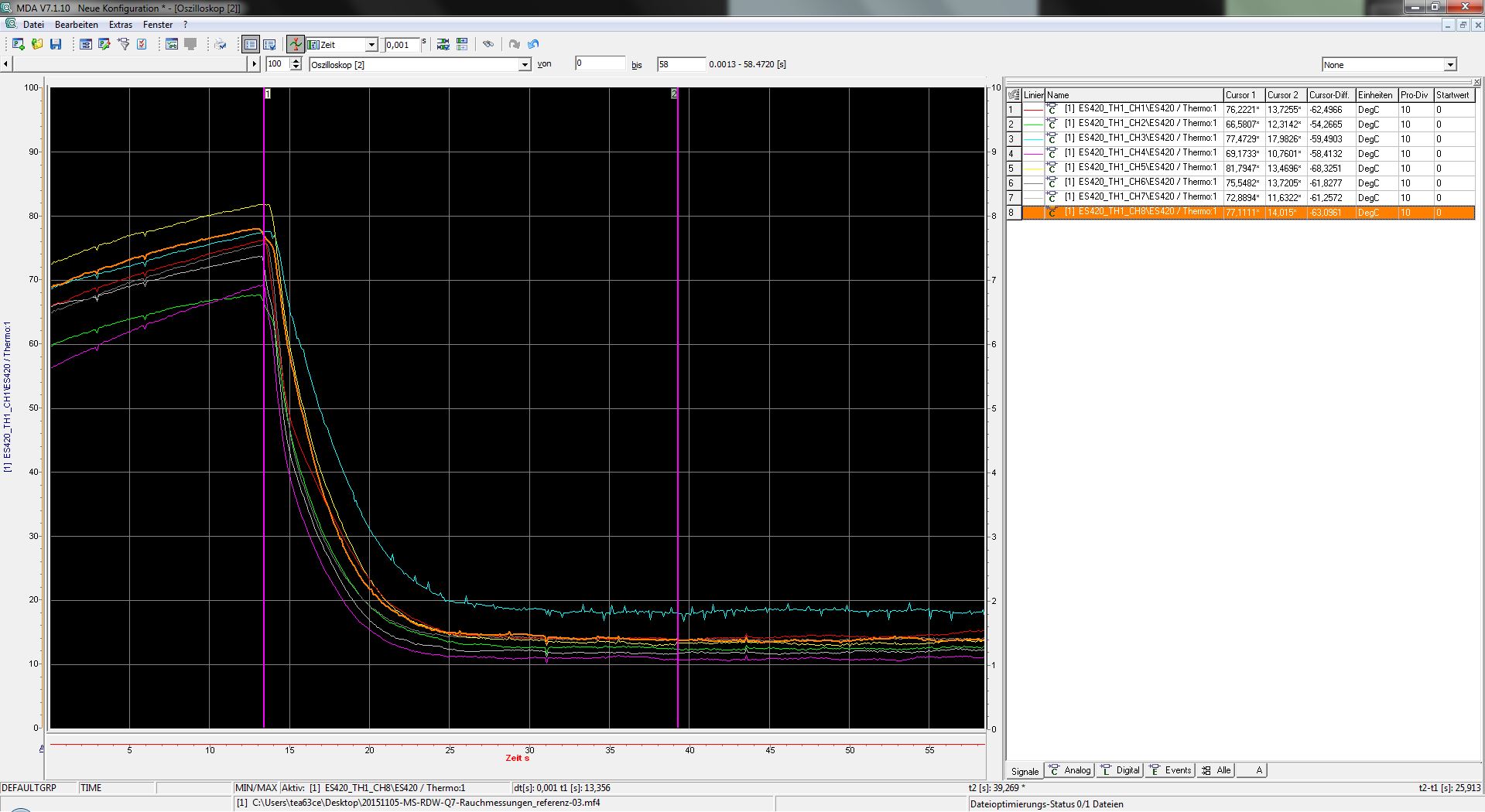 An dem einen sieht man den Verlauf der Messung , leider mit zu hoher Abtastrate von 100ms