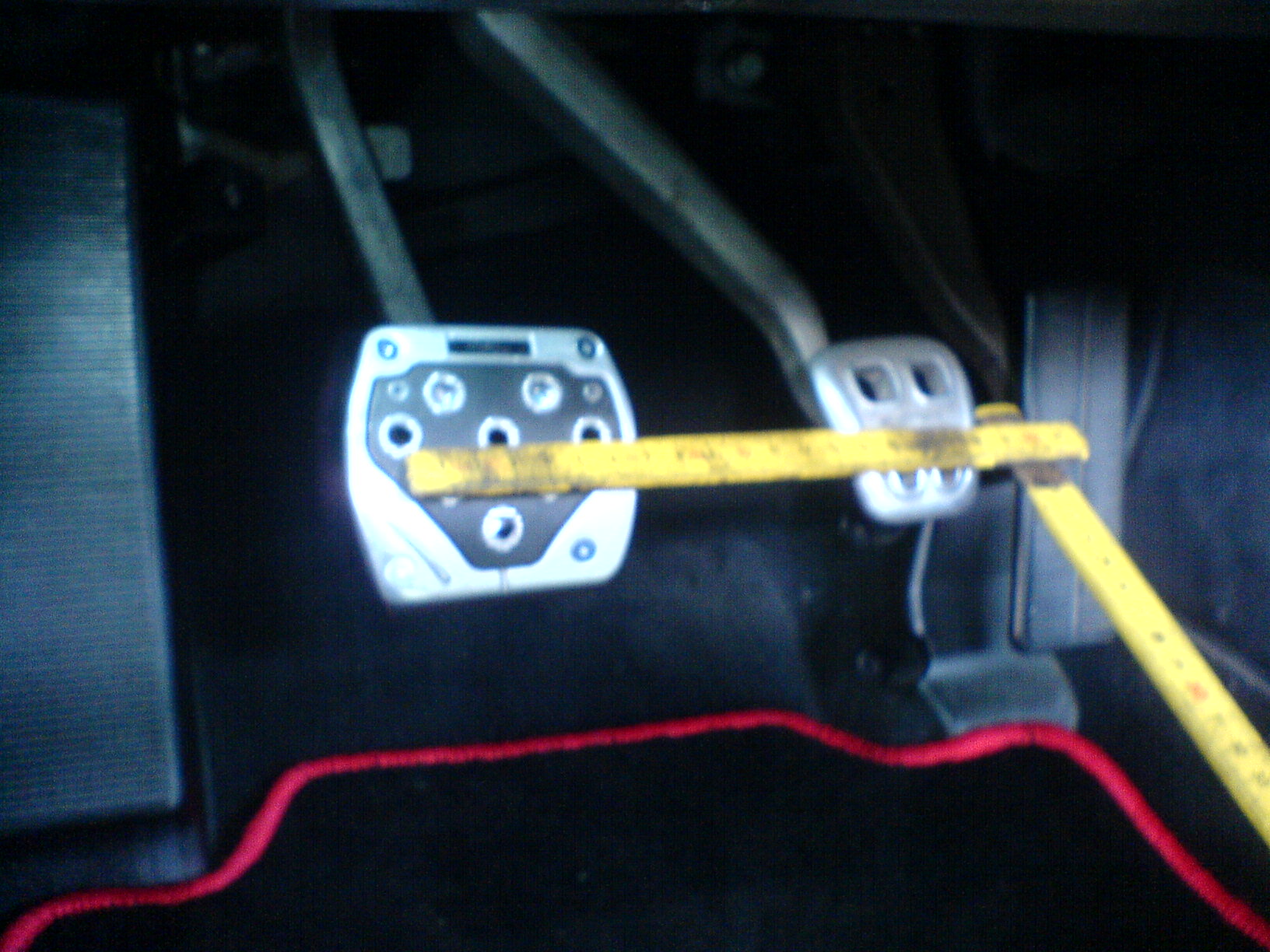 Jetzt hab ich einfach die Pedalauflage unterlegt, und bin auch wieder auf gleicher Höhe wie das Bremspedal.