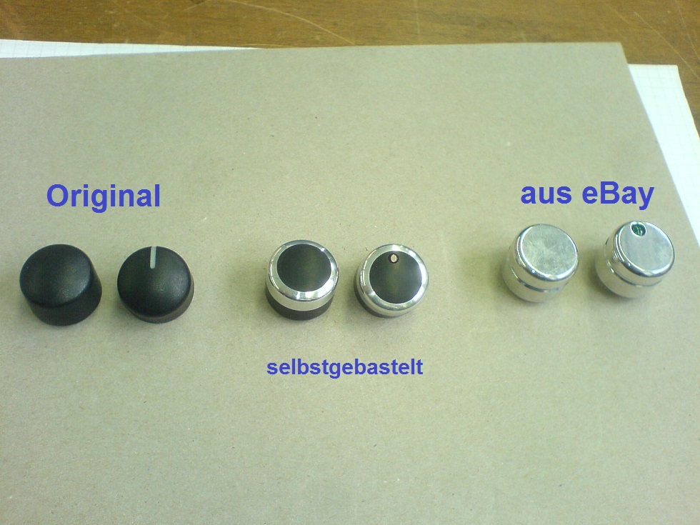 Dann musste links und rechts noch eine Rundung für die Drehknöpfe ausgespart werden. (Geht ganz leicht, wenn man ein 40er Rohr mit Schmirgelpapier umwickelt, und so die Aussparungen hinein feilt.)