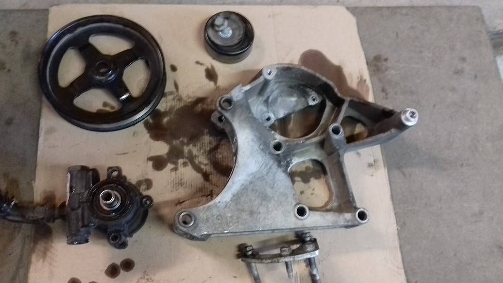 Die C6 Riemenscheibe hat dazu auch Aussparungen, damit man an die Schrauben der Pumpe kommt. Bei der geschlossenen C5 Riemenscheibe muss man den ganzen Träger samt Pumpe herausschrauben.