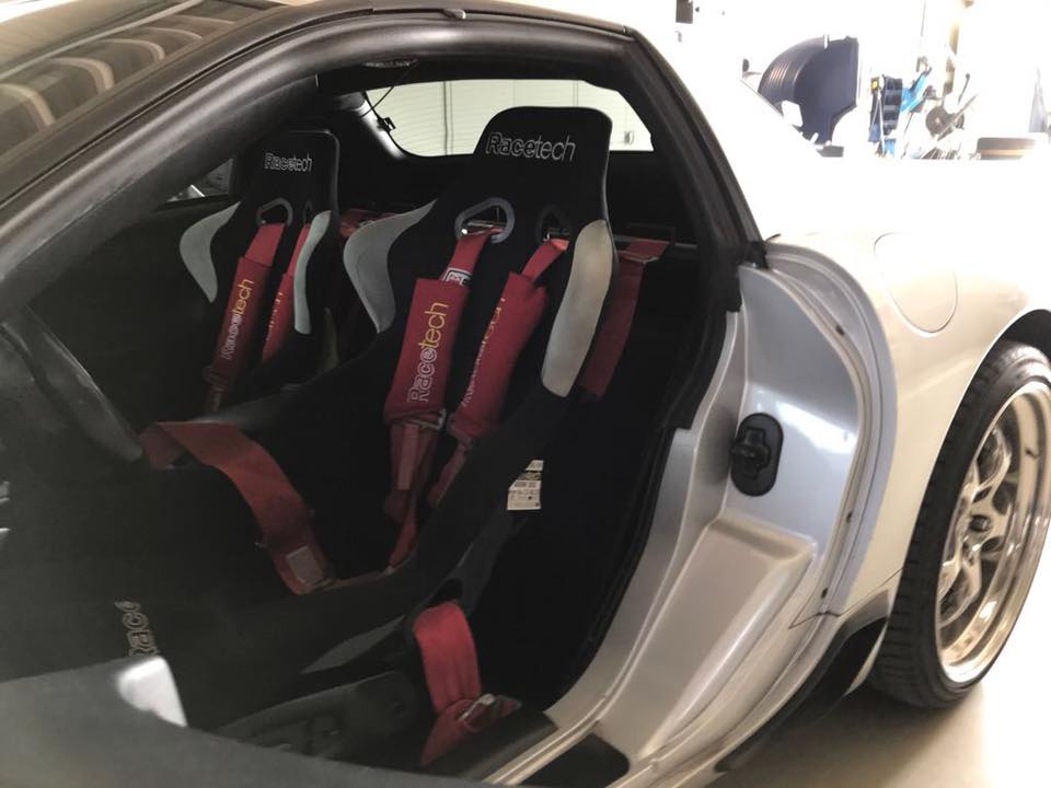 2. Schalensitze RaceTech schwarz velours, 4 Punkt Hosenträgergurte G Force 3 Zoll rot,Brey Krause Gurtbügel schwarz,32 er Raid mit Corvetteproject Nabe,C 6 Z06 Schalteinheit mit Alcantara Schaltsack, Mittelkonsole und Unterseite Arnaturenbrett Fahrerseite in Wagenfarbe lackiert,Pioneer DVD Navi(US),Beifahrerhaltegriff und Türgriffe Kunstleder silber, HUD