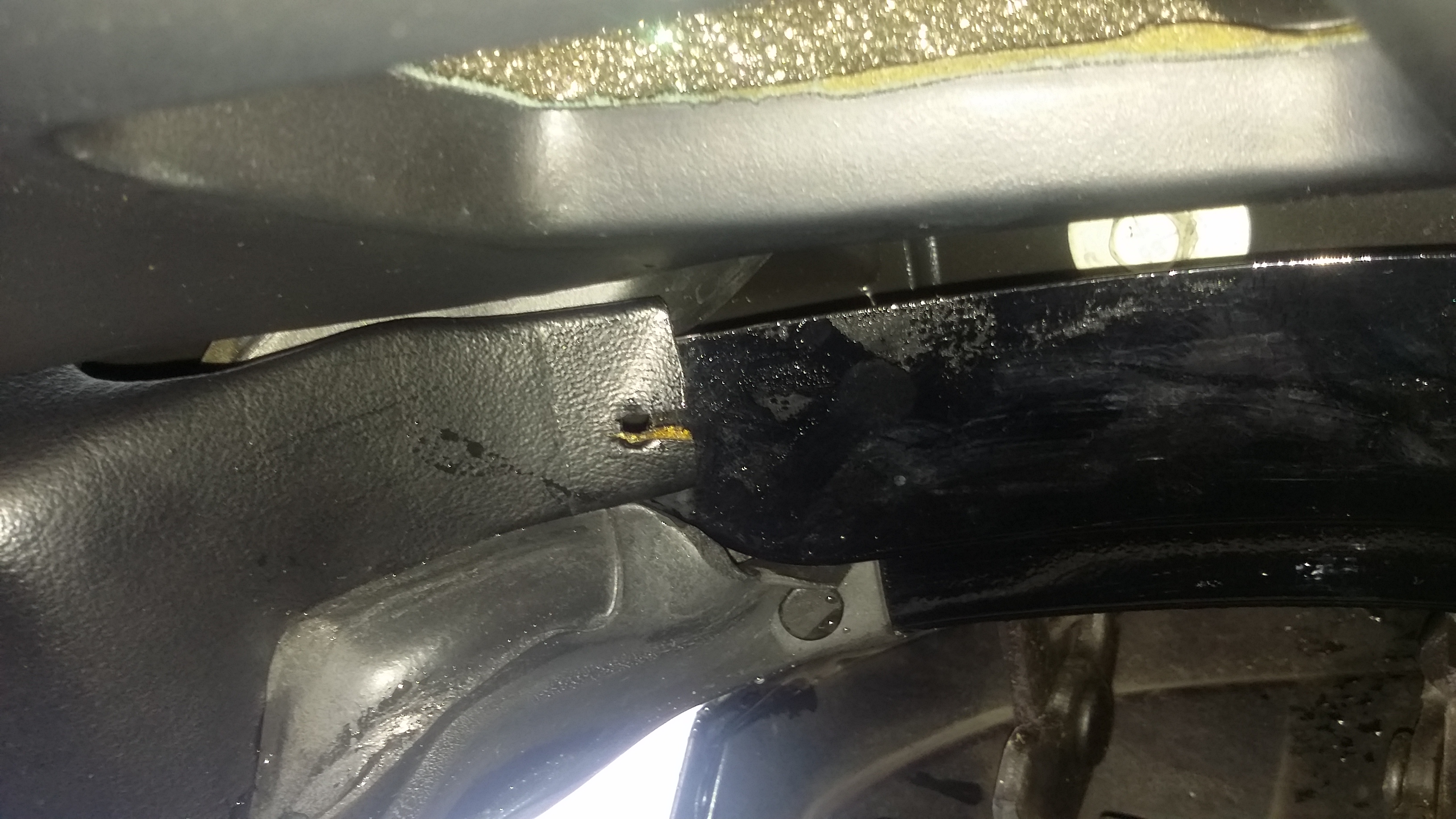 Ich vermute, dass es an der A Säule runterläuft und dann in das Auto tropft. Und das nicht gerade wenig.
