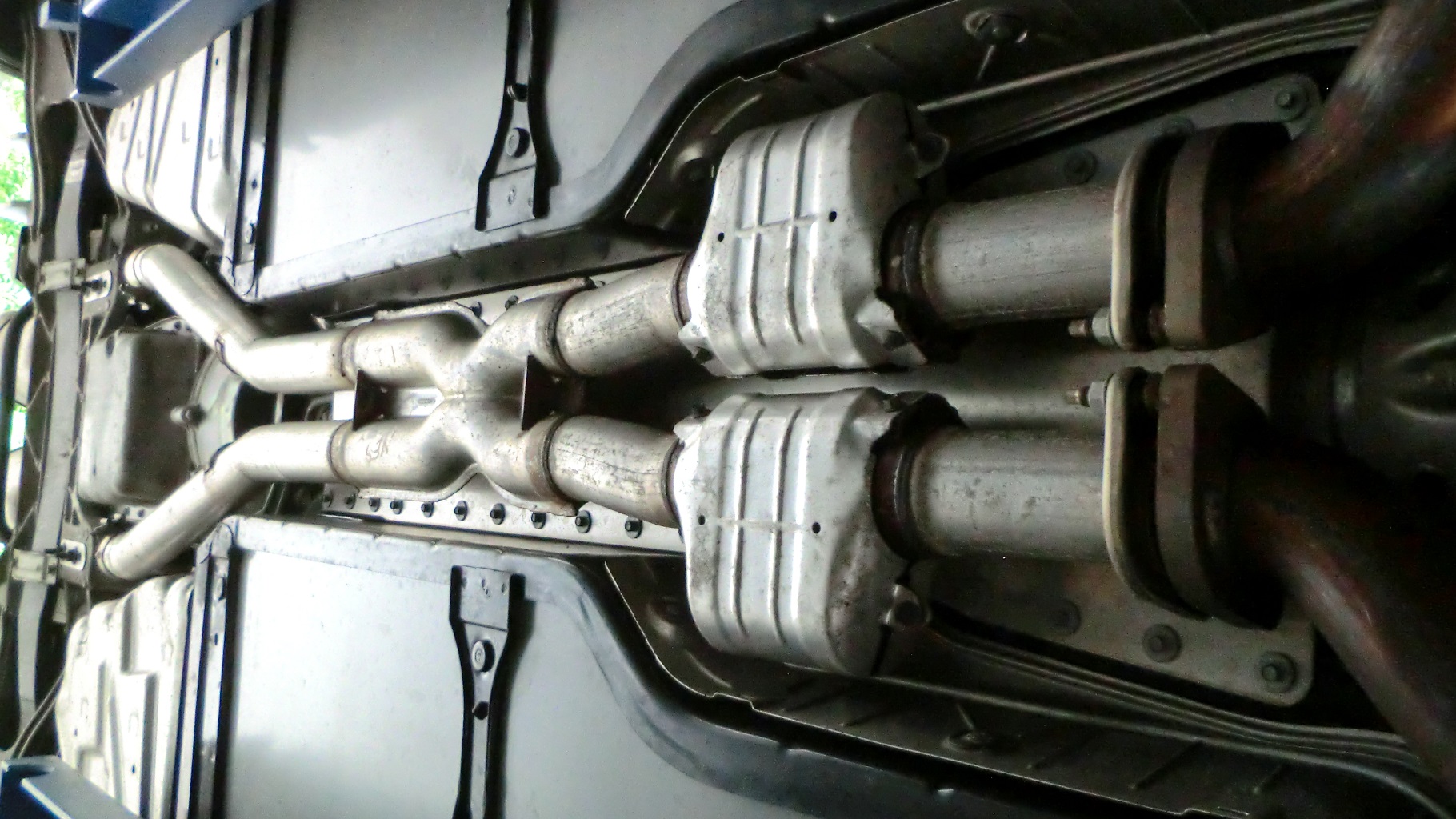 Etwas irritiert bin ich von den Kats, zumal ich beim einstellen der Fahrwerksgeometrie nur vorne am Krümmer welche sehen konnte. Meine C6 ist ein US Model mit NPP. Gab es da Unterschiede oder hat der Vorbesitzer vielleicht schon gehandelt? Sieht jedenfalls original aus...
