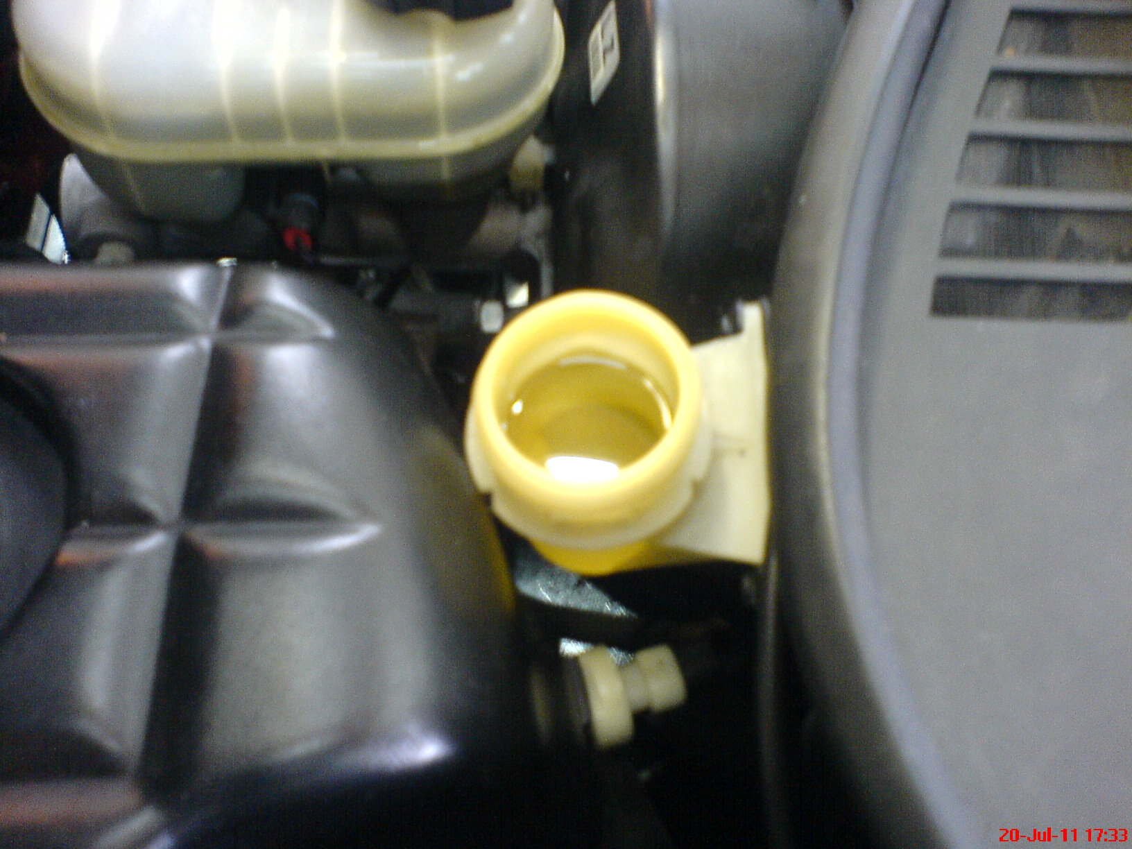 1.) Die alte Kupplungsflüssigkeit absaugen, und mit frischer Flüssigkeit auffüllen.