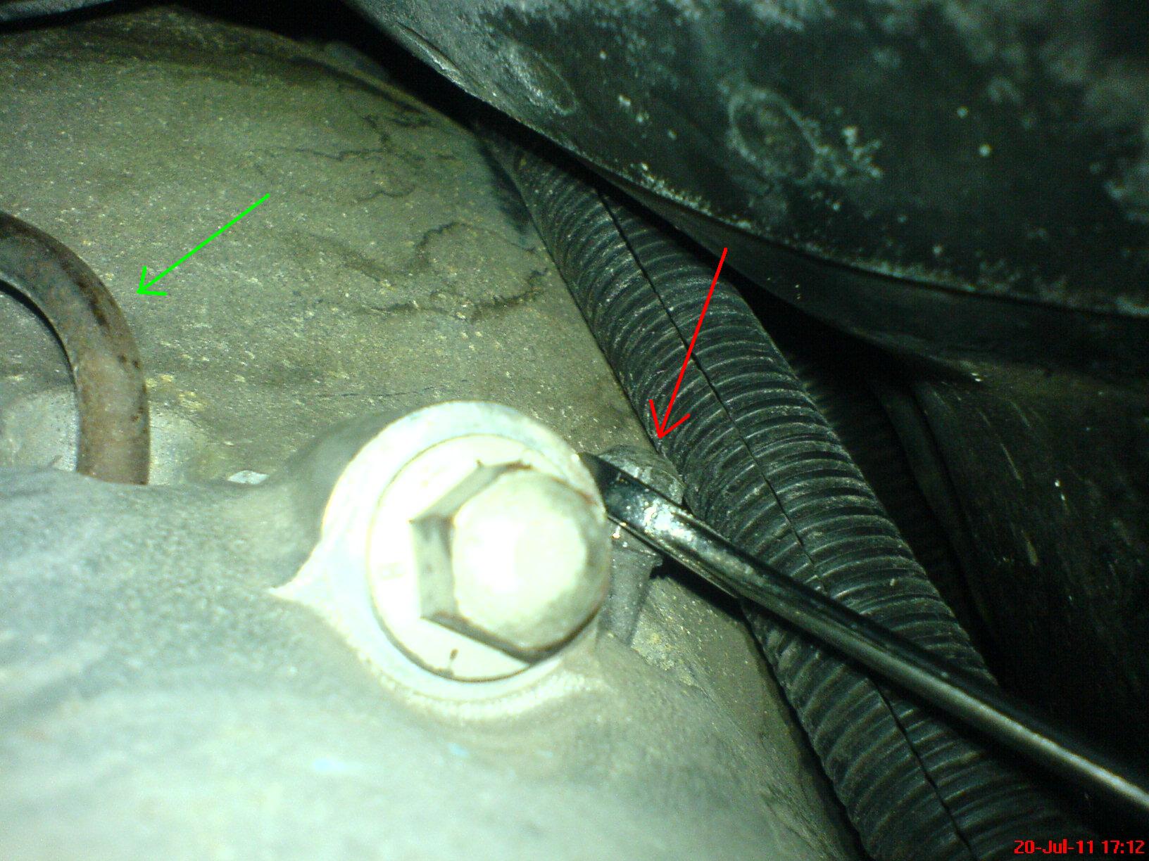 5.) GRÜNER Pfeil zeigt die Leitung zum Geberzylinder ,