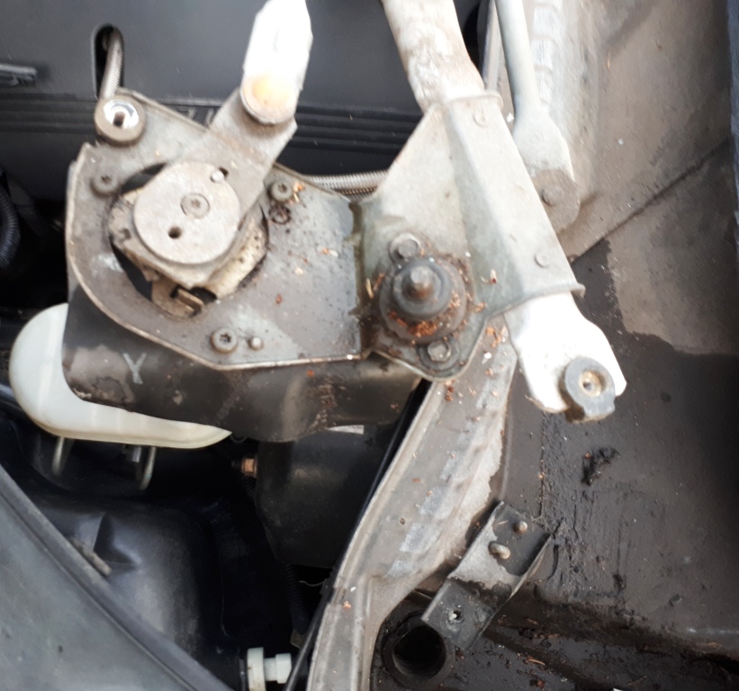 Nun liegt der Scheibenwischer Motor vorne links an der Scheibe frei.