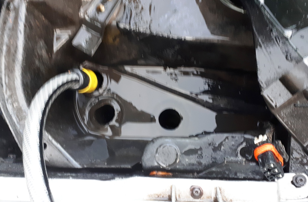 Und das gesamte Wasser fießt über den Scheibewischermotor und durch die 3 Abläufe in den Kotflügel.