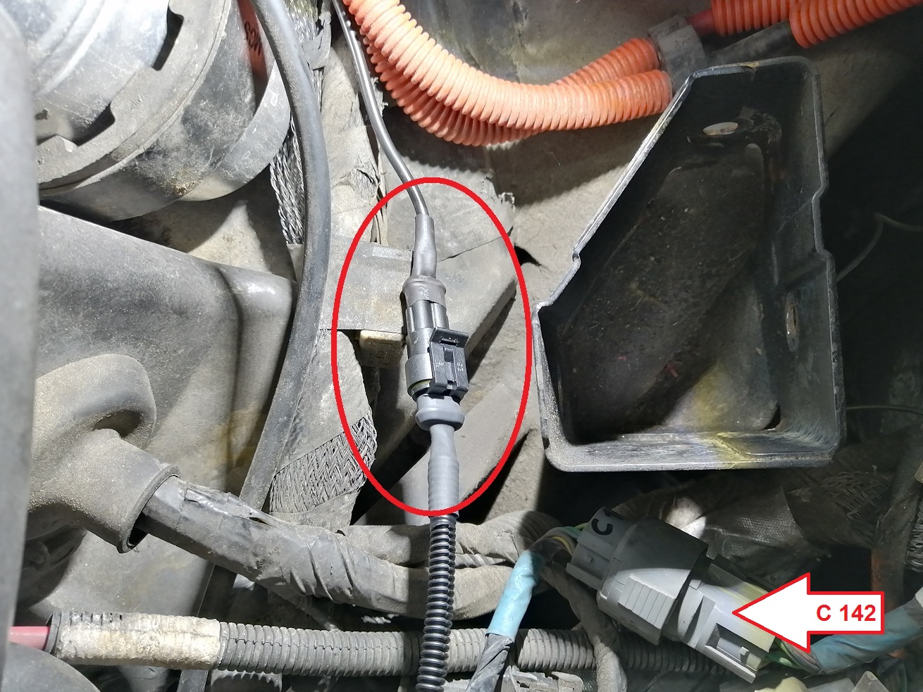 Original würden die Kabel auf den Stecker C142 gehen und dann mit dem Getriebekabelbaum zum Sensor. Aber leider kann man im Stecker keine weiteren Pins hinzufügen, da dieser vergossen ist.