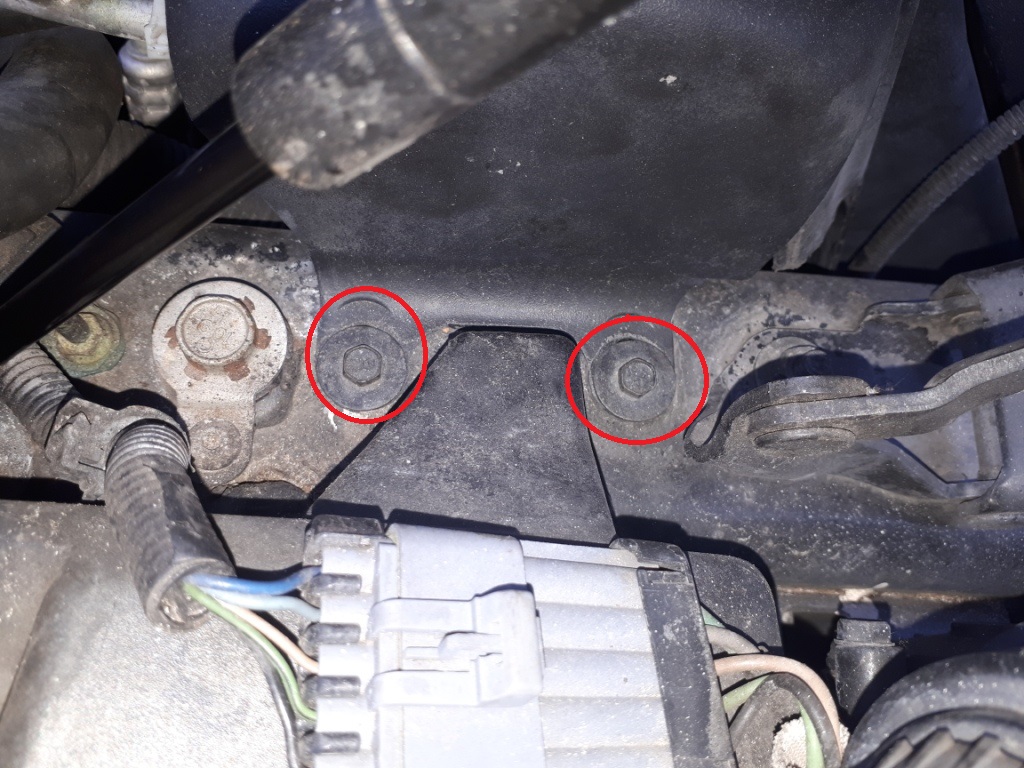 Die Schraube oben links ist ein Stehbolzen, den man löst und mit raus nimmt.