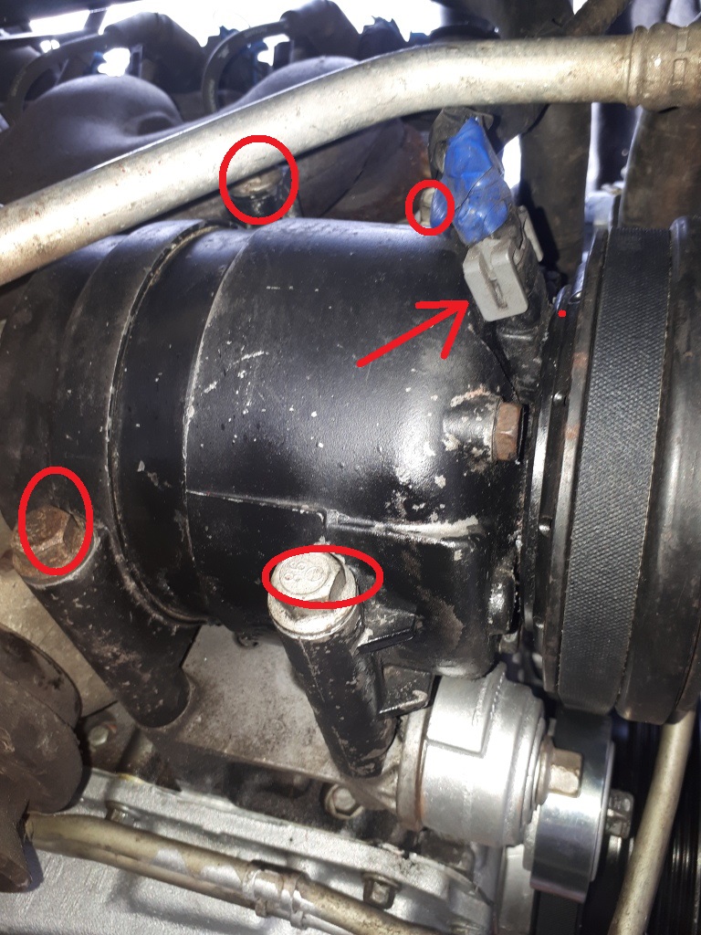 Da gerade die Vorderache draußen war, habe ich den Kompressor auch ausgebaut.
