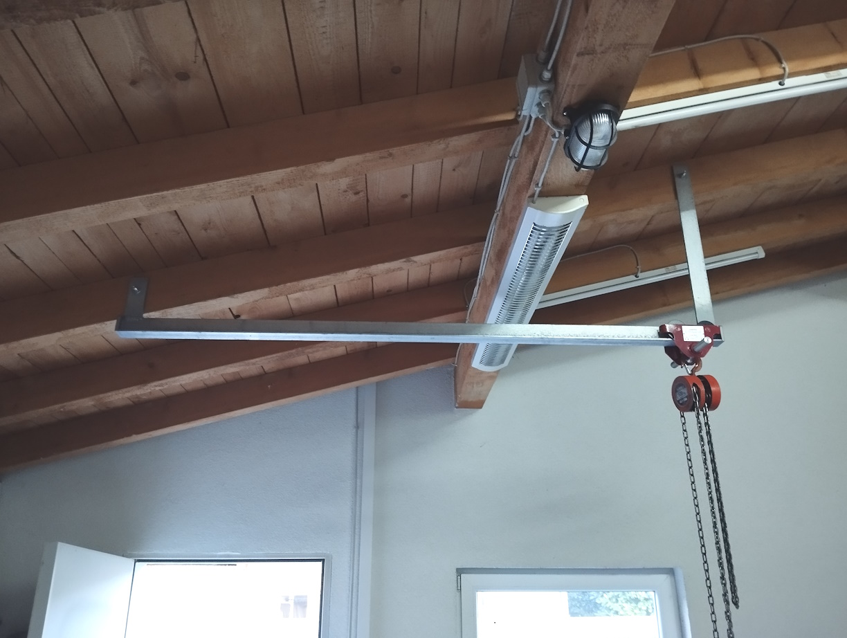 Also musste ich mir erst mal was basteln um den Motor herauszuheben und ihn dann vor das Auto auf eine Palette zu setzen.