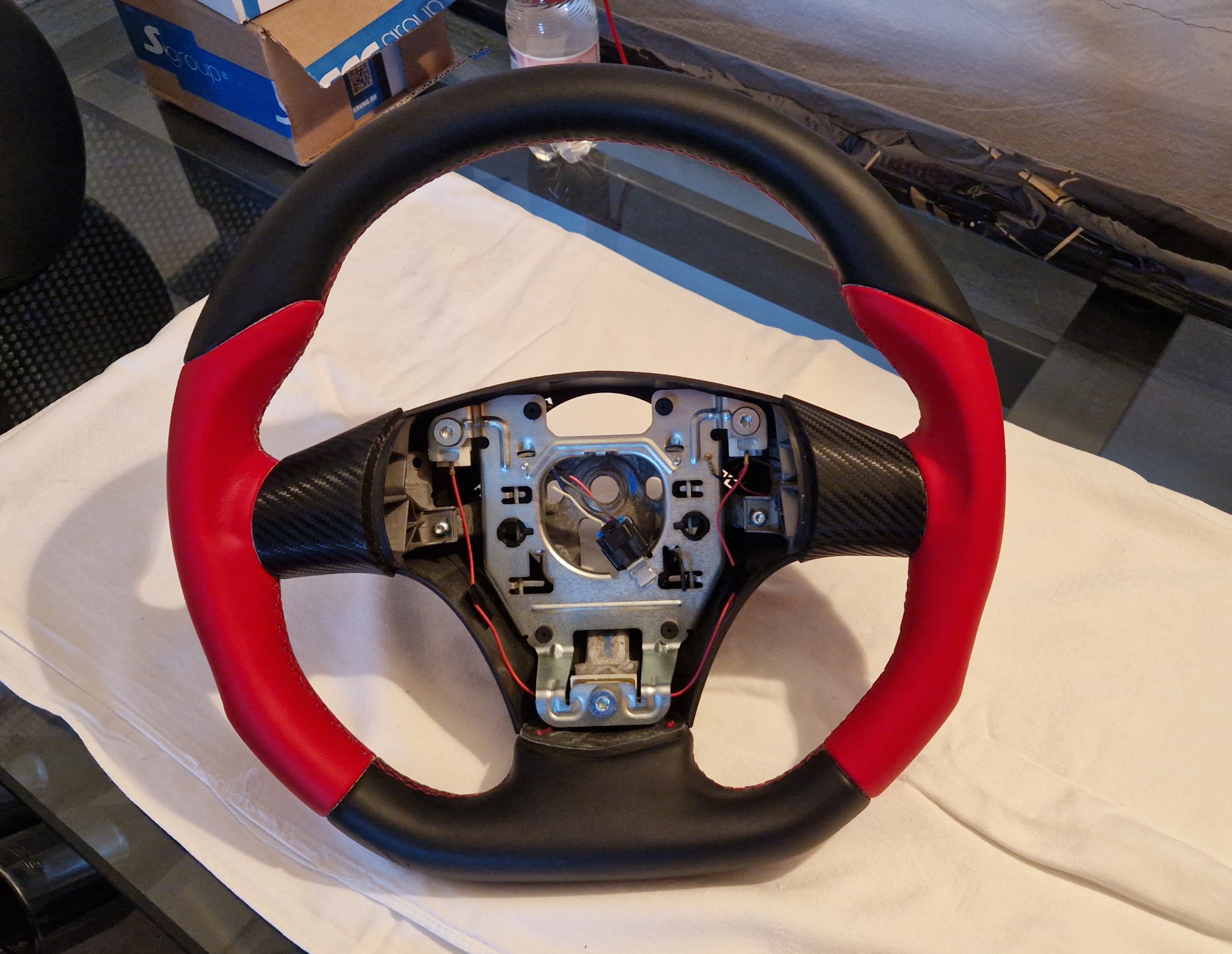 Da ich meine Schwarze jetzt mit dem Molle Volant steuere, benötige ich mein originales Lenkrad nicht mehr.