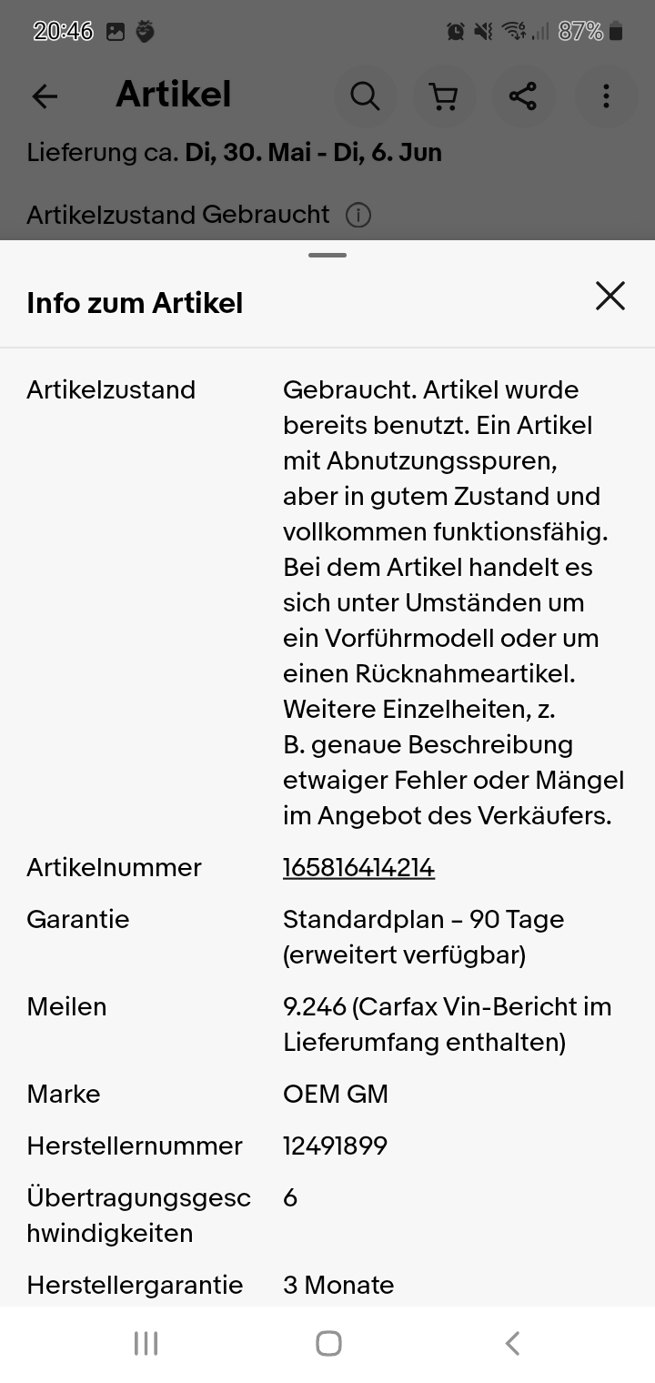 Muß ich halt das teurere generalüberholte nehmen. Ist in Deutschland und er gibt Garantie. Muß ihm nur 850 Pfand überweisen die ich wiederkriege sobald er mein altes Getriebe im Austausch hat.