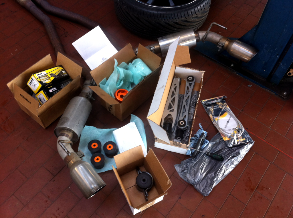 Ein Blick ins Programm von Pfadt Race Engineering versprach Besserung. Die Buchsen und Aufhängungsteile die serienmässig verbaut waren, mussten weichen - der Kompromiss aus "Sportlichkeit" und "Komfort" war einfach zu offensichtlich.
