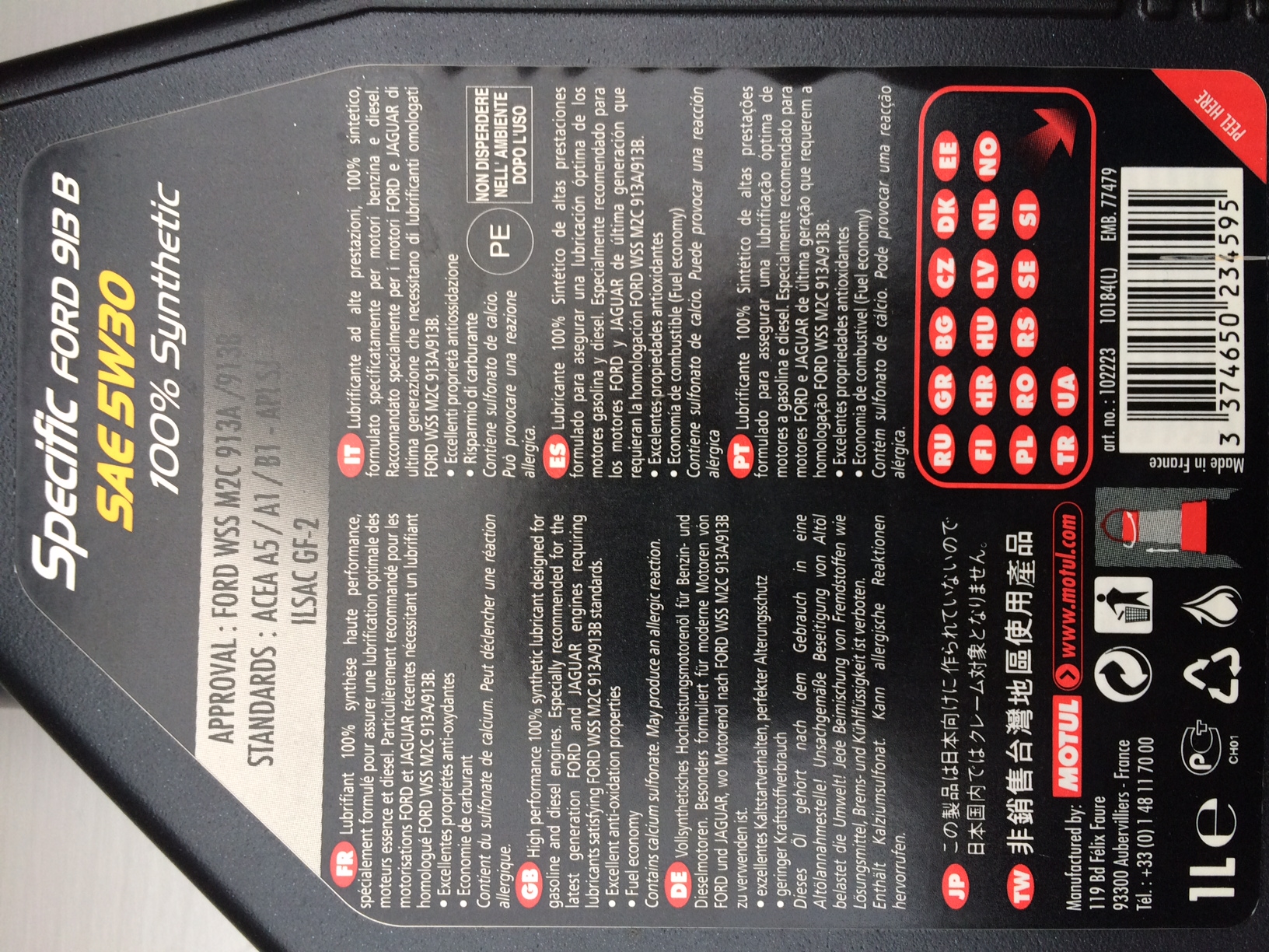 Re: 1 Liter Motul 5w30 (Ford 913B)