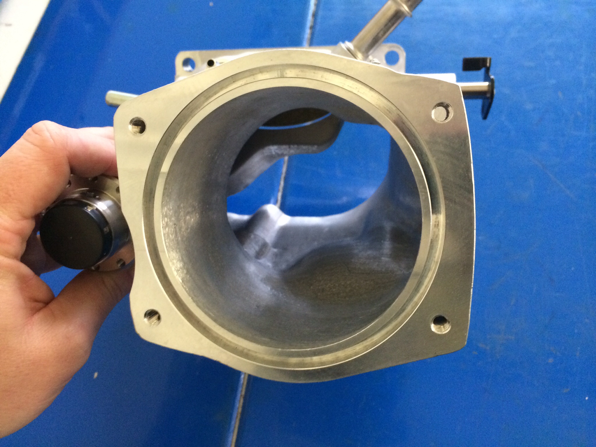 Heute hatte ich etwas Zeit das Lingenfelter Bauteil zu optimieren und für große Drosselklappen vorzubereiten.