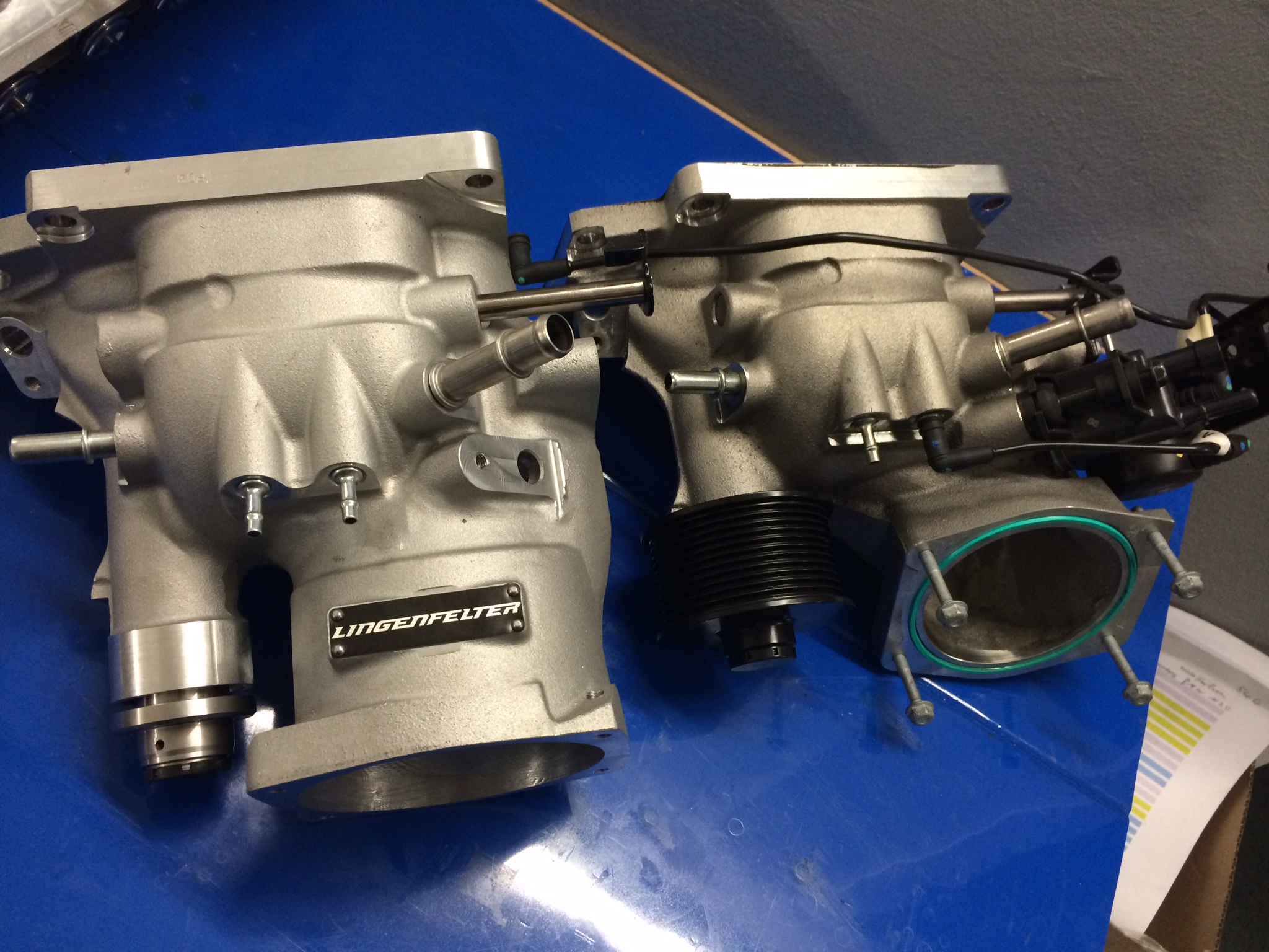 Und noch ein, zwei Vergleiche zwischen dem original Drosselklappenstutzen sowie dem von uns aufgemachten Lingenfelter Teil: